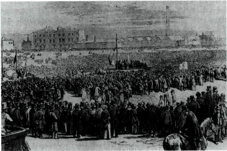 1848년 영국의 50만 노동자가 참가했던 노동 운동 집회 모습.