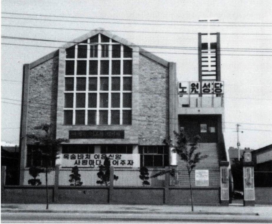 대구대교구 소속 본당. 대구시 북구 노원동 3가 884 소재. 1976년 2월 18일 비산동 본당에서 분리 설립되었 으며, 주보는 성 유스티노. 관할 구역은 노원동 2 · 3가, 노곡동, 조야동, 비산5 · 6동. 〔교 세〕 1976년 1,224명, 1980년 1,950명, 1986년 2,831명, 1990년 3,209명, 1994년 3,282명. 〔역대 신부〕 초대 이상호(李相護) 베 드로(1976. 2~1978. 3), 2대 이길준(李吉俊) 바오로(1978. 3~1982. 7), 3대 천광성(千光成) 바오로(1982. 7~1987. 6) 4대 유승렬(劉承烈) 바르톨로메오(1987. 6~1990. 7), 5대 정춘석(鄭春錫) 아우구스티노(1990. 7~1993. 10), 6대 이 찬현(李讚鉉) 야고보(1993. 10~1994. 2), 7대 이재수(李在 壽) 시몬(1994. 2~현재). 〔설립과 변모〕 1975년 1월 비산동 본당 사목회에서는 본당 분할을 위해 노원동 본당 설립을 계획하고, 같은 해 7월 대지 430.6평을 매입, 8월 기공식을 가졌다. 이듬 해 2월 본당으로 설정된 노원동 본당은, 그 해 4월 25일 성당(107평)과, 사제관 · 교리실(138평)을 완공하였다. 1978년까지 3년 동안 냉담자 및 행방 불명자 찾기에 전 력하여 신자 증가율이 향상되었으며, 1978년 11월 10 일에는 신용 협동 조합을 발족시켰다. 소강당과 교리실 마련을 위해 지하실을 증축하여 1980년 12월 21일 축 성식을 거행한 노원동 본당은, 1985년 1월 1일에는 교 리실 부족으로 지하 강당을 교리실로 개축 · 축성하였으 며, 11월 4일에는 성당 제대 개축 공사를 벌여 성당을 새로이 단장하였다. 1987년 11월 22일 성모상과 부활 하신 예수 성심상을 축성하였고, 1991년 6월에는 성당 내에 성가대실과 유아실을 만들었다. 1992년부터는 컴 퓨터를 도입하여 본당 업무의 사무 자동화를 도모하고 있으며, 현재는 태전 본당 신설로 전출자가 증가하고 있 다. (→ 대구대교구) ※ 참고문헌 《가톨릭 사전》 천주교 대구대교구, 《대구대교구 총람》, 1986. 〔편찬실〕