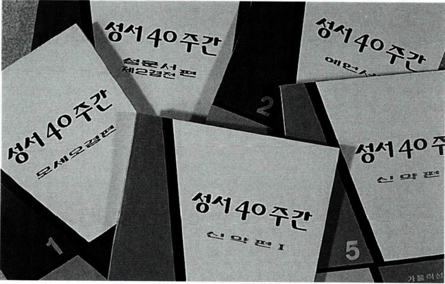 성서 40주간 : 이 방법은 신구약 성서 모두를 일년 동안에 다 읽게 하는 성서 읽기 프로그램이다. 매일 읽을 성서 분량을 정해 주는 이 안내서는 각 과마다 간략하고 쉬운 성서 해설, 주요 성구, 시편 기도를 제시하여 준다. 이 방법은 서울 · 전주 · 수원 · 마산 · 대전 · 안동 교구 등으로 소개되었고, 차층 전국 교구의 사제들과 수도자들에게 확산되었다. 대부분의 교구에서 4박 5일 일정의40주간 강사 양성을 위한 사제들과 수도자 연수를 한두 차례 하였다. 특히 춘천, 부산, 대구, 왜관에서는 성서 40주간 강사 양성을 위한 4박 5일의 성직자 수도자 연수를 2년 동안에 5차에 걸쳐서 함으로써 5권으로 된 안내서 전권을 차례로 마쳤다. 1981년 6월부터 1988년 1월까지 7년 동안 이러한 연수를 한 차례 이상 참여한 전국의 수도자 연인원은 5천여 명이며, 사제들은 650여 명이다. 이 기간 중에 성공회 사제들 20여 명과 10여 명의 프로테스탄트 목사들에게도 이 교재와 방법이 소개되었다. 현재까지 전국 각 교구의 여러 본당과 성서 모임 교육관을 중심으로 이 방법은 계속 활용되고 있다.