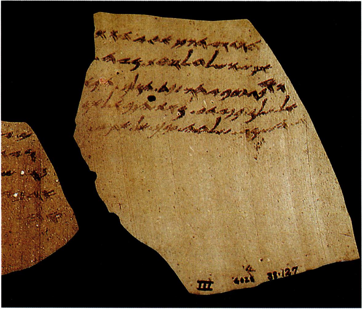 〔라기스 오스트라카〕 1935년에 성벽 근처에서 토기조각 기록인 오스트라카 21개가 발견되어서 라기스와 관계가 있는 역사적 사건들을 조명할 수 있게 되었고, 1961년에는 아하로니가 발굴한 태양 신전에서 또 하나의 오스트라카를 찾아내어 지금까지 모두 22개의 토기조각 기록이 라기스에서 출토되었다. 이들 모두는 기원전 586년 바빌로니아의 느부갓네살에 의해 파괴된 제2주거층에서 발견되었기 때문에 연대 추정에는 별 문제가 없다. 대부분 라기스 성문 안쪽의 수비대 방에서 발견되었으며, 수비대의 한 하급자인 호사야후(Hoshayahu)가 수비대 대장인 야우쉬(Yaush)에게 전투 상황 등을 알리는 보고문 형식을 띠고 있다. 제3 서신에는 유대의 군대장관인 코니야후(Coniyahu)가 구원군을 요청하기 위해 이집트로 파급되는 내용이 실려 있으며, 이러한 사실은 성서의 언급들(예레 26, 22 ; 에제 17, 15)을 역사적으로 뒷받침해 주고 있다. (→ 고고학, 성서학의)