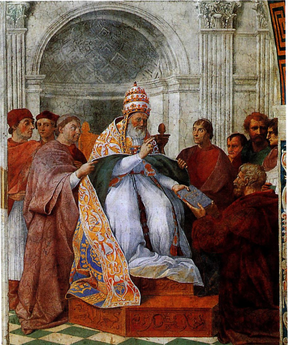 그레고리오 9세 교황에게 교령집을 증정하는 라이문도.