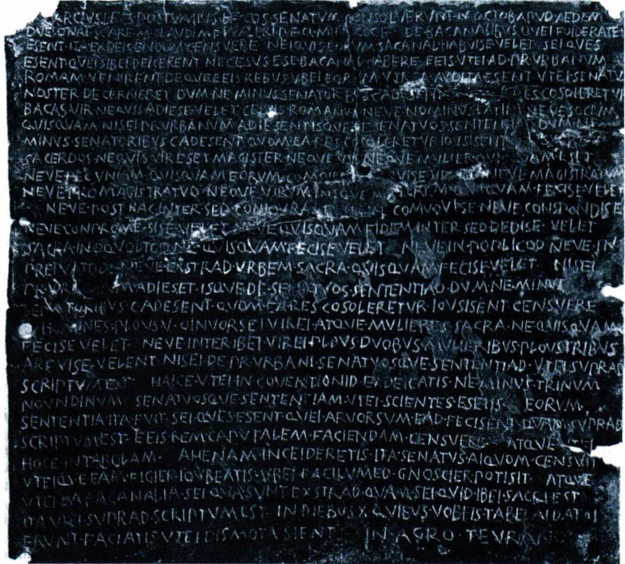 기원전 186년의 로마 원로원 법령을 새겨 놓은 청동판.