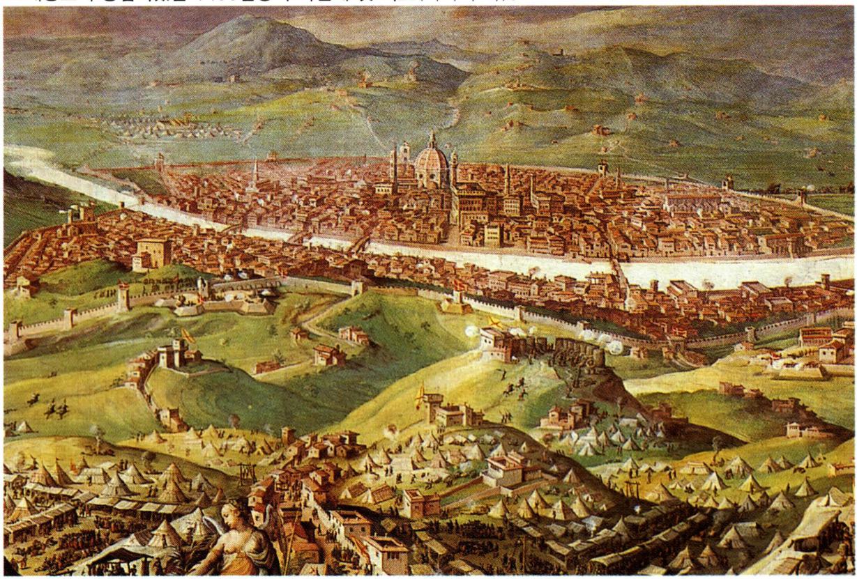 르네상스의 중심지였던 1490년경의 피렌체 옛 지도(바사리 작) .