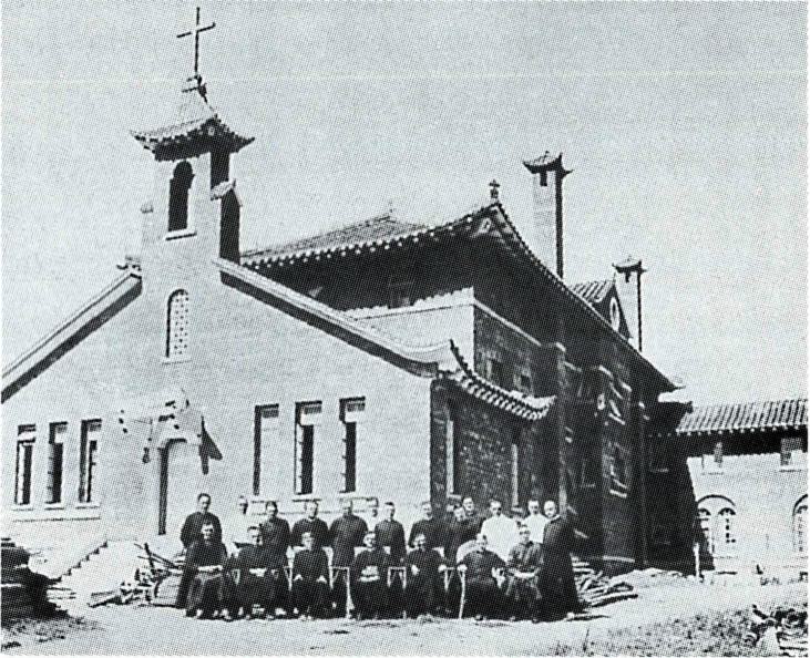 〔평양 지목구 및 대목구 시기〕 교황청 포교성성에서는 1927년 3월 17일 평양 지목구를 설정하고 초대 지목구장에 번 신부를 임명하였다. 이에 번 지목구장은 한국 메리놀회 임시 본부를 비현에서 신의주 진사동(眞砂洞)으로 이전하고 한양 절충식 연와제(煉瓦製) 성당을 신축하였다. 아시아 지역의 선교를 목적으로 창설된 메리놀회는 오시닝에 있는 본부 건물을 중국식과 서양식을 절충하여 건립하였는데, 메리놀회는 이 본부 건물을 모델로하여 포교지에서 건물이나 성당을 신축할 경우에는 항상 절충식을 택하였다. 마찬가지로 평안도 지방에서도 이 시기 신설된 성당 건축 양식은 유럽의 전형적인 고딕 양 식이 아닌 절충식이었다.