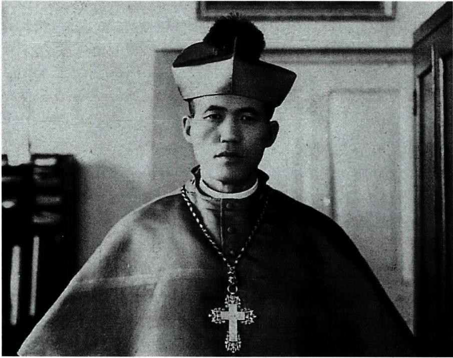 모관을 쓴 노기남 대주교.
