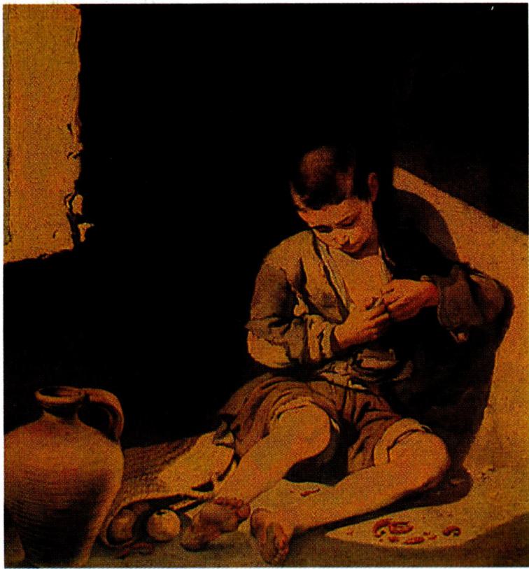 17세기 스페인에서 가장 인기를 누렸던 바로크 양식의 화가. 1617년 세비야(Sevilla)에서 태어나 이듬해 1월 1일 세례를 받았다는 것 외에 초기 생애에 대해서는 잘 알려져 있지 않으나 어린 시절에 고아가 되어 종교화를 그리며 생계를 꾸리다가 1642~1645년 마드리드의 왕립 미술원에서 벨라스케스(D. Velàzquez, 1599~1660)로부터 공부하였다고 한다. 이 기간 동안 무리요는 당시 스페인 궁정에 소장되어 있던 티치아노(Tiziano Vecellio), 루벤스(P.P. Rubens), 반 데이크(A. van Dyck)의 작품 등에서 깊은 감명을 받은 것으로 여겨진다. 마드리드에 머무르지 않고 자신의 고향인 세비야로 돌아온 그는, 그 후 마드리드에서 보았던 16세기의 베네치아파와 17세기의 플랑드르파의 작품에서 받은 자극을 바탕으로 점차 자신의 양식을 추구하였으며, 세비야의 귀족 계급에서 유명한 미술가가 되었다. 그는 스페인 바로크 시기에 가장 화려한 화풍을 확립하였으며, 특히 간결하고 감상적인 주제를 사실적으로 잘 표현한 반종교 개혁 운동의 대표적인 작가로 인정받았다.