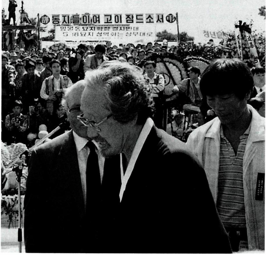 그의 민주화 운동은 통일 운동과 평화(민족 화해) 운동 으로 발전해 갔다는 점에 특징이 있다. 1984년에 '민주 통일 국민 회의' 의장이, 1985년에는 '통일 민중 운동 연합' 의장이 된 문익환은, 1989년에 북한을 방문하여 김일성과 직접 통일 정책을 논의하였고, 1991년에는 범민련 남측 본부 결성 준비위원회' 위원장을 맡은 데 이어 1993년에는 범민족 대회 대회장을 맡았다. 그는 '국토 · 민족 · 역사' 의 통일을 표방하였으며, 특히 전적 으로 민중에 의한 평화 통일을 추구하였다. 그러므로 그 는 남북의 체제를 모두 인정하는 연방제 방식의 통일까 지 수용하였다. 그가 행한 방북 사건이라는 돌출 행위는 민족 자결적인 통일 표방에서부터 비롯된 것으로, 나치 치하에서 투쟁하였던 독일의 니묄러(M. Niemöler) 목사 가 통일 운동으로 1950년에 소련을 방문한 돌출 행위와 는 성격 면에서 다소 다르다고 할 수 있다. 문익환 목사 의 통일 운동은 민중에 의한, 그리고 민족간의 화해 및 증오를 몰아내는 (좌우를 다 포괄하는) 근본적 평화를 통한 통일을 이루려는 의도였다. 그가 노벨 평화상 후보 로 추천되기까지 하였다는 것은 이러한 그의 정신에 대 한 세계적 응답이라고 할 수 있을 것이다. 그의 두 번째 시집 《꿈을 비는 마음》(1978)에서 "통일을 이루지 못하 면, 우선 평화 공존이라도 하자" 라고 제의한 것은 곧 평 화에의 기원이 가득 차 있음을 분명히 보여 주는 것이다.
