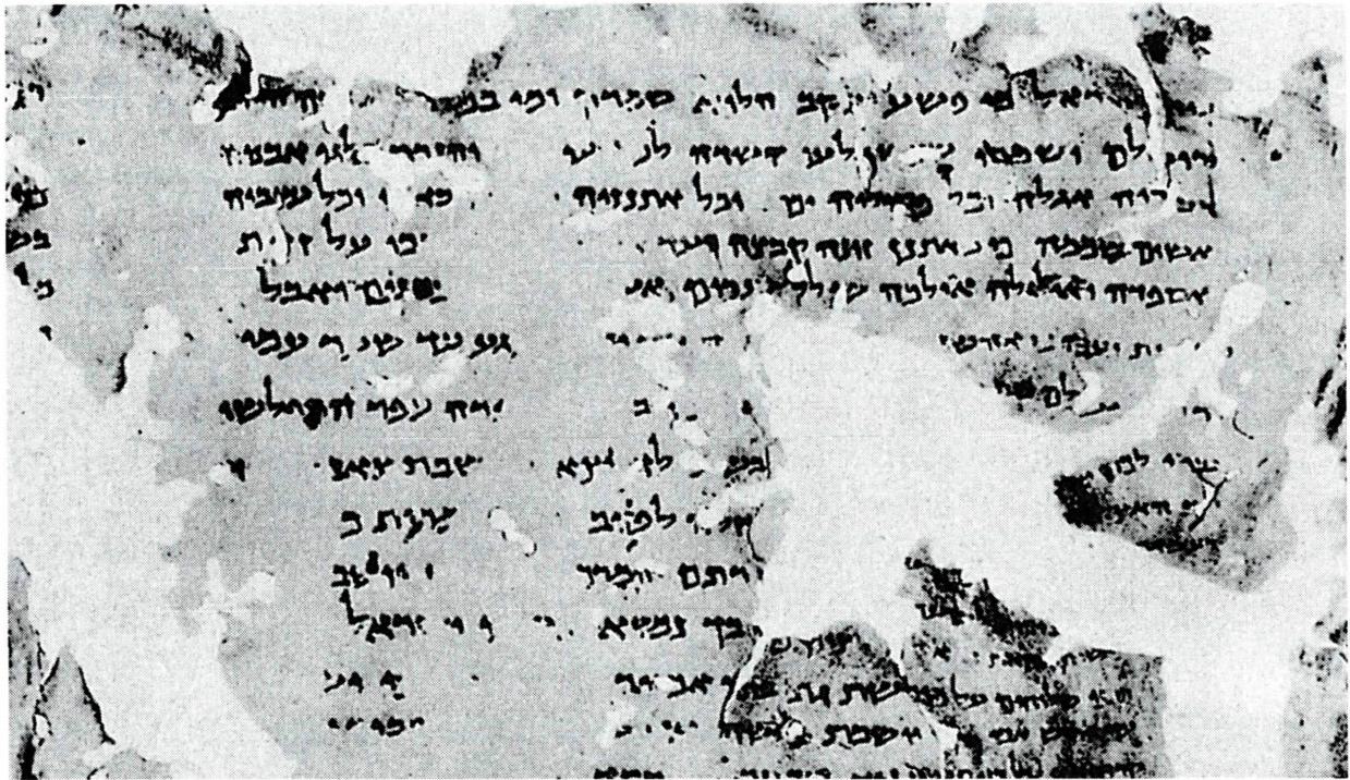 〔본 문〕 미가 본문은 심하게 손상되어 있어서 여러 부 분이 다른 상태로 전해지고 있다. 새로운 미가의 히브리 본문 자료들로서는 쿰란 동굴에서 발견된 사해 두루마리 가운데 세 개의 필사본이 있다. 1QpMi(1Q 14)에는 미가 본문의 주석(1, 5-7. 8-9 ; 6, 14-16)과 함께 단편들이 들 어 있고 1장 2-5절을 인용하였다. 또한 몇 가지 다른 본 문 자료와 주석이 나타난다. 4QpMi(4Q 168)에는 미가서 의 짧은 본문과 주석이 나오는데 4장 8-12절을 인용하 였다. 이것은 단편들로 이루어져 있고 오직 하나의 다른 본문 자료를 지니고 있다. Mur 88은 요엘서 2장 20절에 서 즈가리야서 1장 4절까지의 소예언서의 긴 두루마리 로 마소라 본문(MT)에 매우 가깝고 본문 구조도 아주 유사하다.