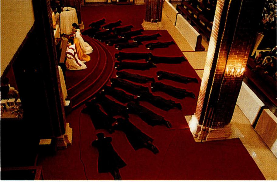 〔본당의 현재〕 1976년 미리내 공소는 큰 변화를 겪게 되었다. 부산 광안리에서 남녀 수도회 창설을 준비하던 정행만(프란치스코 사베리오) 신부가 수원교구장 김남 수(金南洙, 안젤로) 주교의 허락을 받아 미리내에 정착 하게 된 것이다. 같은 해 9월 24일 미리내에 부임한 정 행만 신부는 우선 남녀 수도회를 재개하였고, 이어 10월 12일 미리내 공소가 다시 준본당으로 승격되면서 주임 신부로 임명되었다. 이 수도회 중에서 '미리내 성모 성 심 수녀회' 는 1983년 7월 11일 교황청으로부터 회헌을 승인받고, 이듬해 2월 2일 수원교구장으로부터 인가를 받았으며, '미리내 천주 성삼 성직 수도회' 는 1991년 3 월 19일에 교황청으로부터 회헌을 승인받음과 동시에 수원교구장으로부터 인가를 받았다.