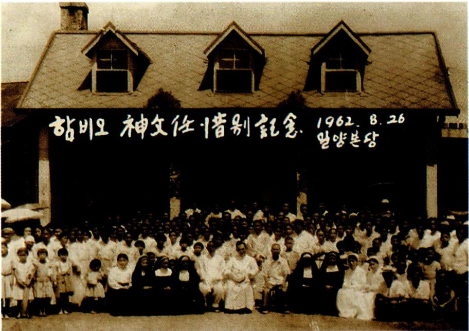 1928년 8월 30일의 명례 본당 축성식(왼쪽)과 삼랑진으로 옮긴 후 1935년 11월 3일 낙성한 밀양 성당.