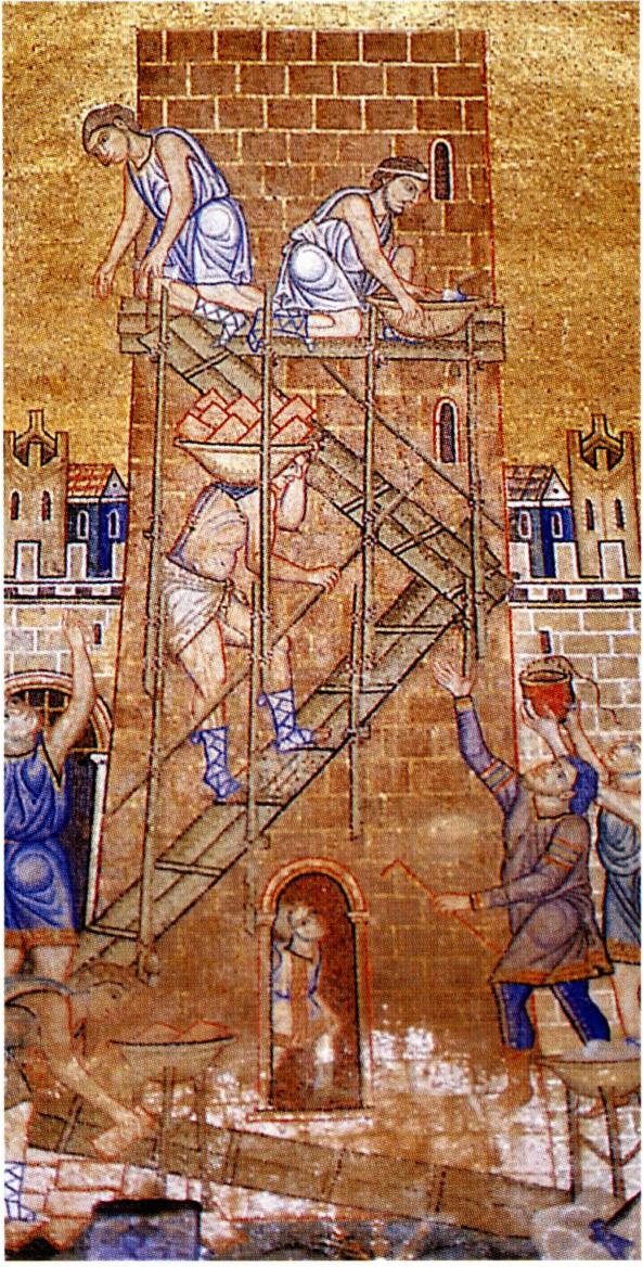 세계의 다양한 언어와 온 땅으로 흩어지게 된 인류 확산의 원인으로 창세기 11장 1-9절에서 묘사된 건축물.