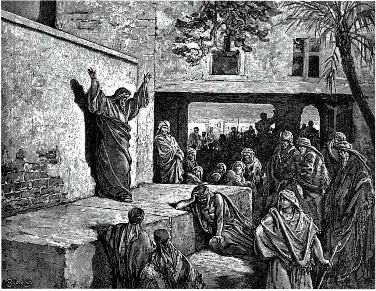 야훼께 대한 신앙을 저버린 이스라엘 백성들에게 회개를 외치는 예언자 미가(구스타브 도레 작).