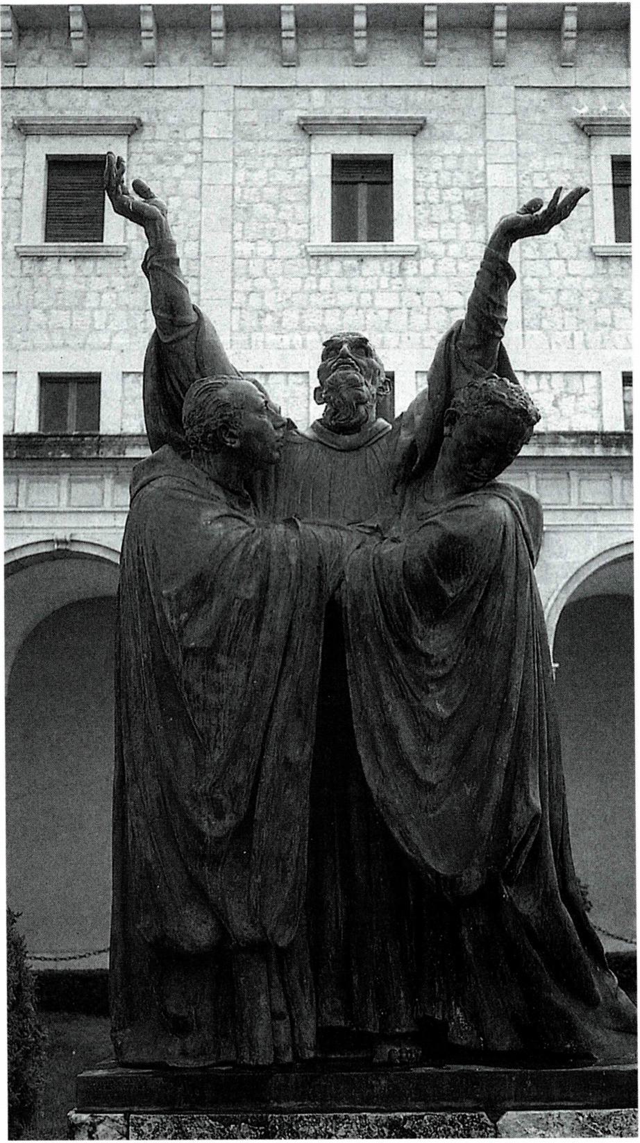성인. 베네딕도 수도회 창설자. 이탈리아 몬테 카시노 (Monte Cassino) 수도원 설립자. 서방 수도 생활의 아버지. <베네딕도 규칙서>의 저자. 축일은 7월 11일. 베네딕도의 생애에 대한 사료는 그레고리오 1세 교황 (590~604)이 593~594년경에 저술한 《이탈리아 교부들 의 생활과 기적에 관한 대화집》(Dialogi de Vita et Miraculis Patrum Italicorum) 제2권과 다른 두 부분(3권 16 ; 4권 8-9) 에 불과하다. 베네딕도는 규칙서를 저술하기는 하였지만, 여기에 자신의 생애나 모습에 관한 어떠한 흔적도 남기지 않았다. 반면에 모두 4권으로 되어 있는 《이탈리아 교부들의 생활과 기적에 관한 대화집》 제2권에는 '하느님의 사람' 베네딕도의 생애가 생생하게 묘사되어 있다. 그레고리오 1세 교황은 이 책에서 베네딕도의 출생부터 중요한 사건들과 계기, 그리고 죽음까지 전생애를 묘사하였는데, 그는 성서나 그 당시의 성인 전기에 나오는 예형들에서 영감을 받아 이 전기를 쓴 듯하다. 그렇다고 해서 베네딕도의 생애에 대한 역사성을 의심할 필요는 없다. 그레고리오 1세 교황이 이 책을 저술하던 594년경 에는 베네딕도의 제자들이 아직 살아 있었고, 교황은 그들을 통해 베네딕도에 관해 자세히 들을 수 있었을 것이며, 또 그의 규칙서를 직접 읽고 이를 토대로 하여 베네 딕도의 전기를 교훈적인 형태로 재구성한 것으로 여겨지기 때문이다. 〔생 애〕 480년경 이탈리아 중부 움브리아(Umbia) 지방의 누르시아(Nursia)에서 태어나 부유한 가정에서 성장한 후 로마에 공부하러 간 베네딕도는, 도덕적으로 타락 한 당시의 로마에 회의를 느끼고 보다 뜻 있는 생활을 하기 위해 엔피데(Enfide)에 있는 성 베드로 성당에서 기숙하였다. 그러나 망가진 채를 원상 복구한 기적 사건으로 인해 이곳에서의 생활은 오래가지 못하였다. 이 기적의 소문이 널리 퍼져 나가자 베네딕도는 자신을 감추기 위 해 남몰래 길을 떠나, 이때부터 본격적인 수도 생활을 시작하였다. 베네딕도는 로마 동쪽의 수비아코(Subiaco)에 있는 한 동굴- '사크로 스페코 (Sacro Speco, 거룩한 동굴)라고 부르는 이 동굴은 가파른 절벽의 중앙에 있어 외부 사람이 접근하기가 지극히 어려웠다─에서 3년 동안 은수 생활을 하였는데, 그는 동굴 생활에 들어가기 전에 로마노 (Romanus)라는 수도자로부터 수도복을 받아 입었었다. 로마노와의 유일한 접촉도 줄에 바구니를 달아 빵을 전 해 주는 간접적인 접촉이었고, 부활 축일의 날짜도 기억 하지 못할 만큼 그는 기도에 몰입하는 수행 생활을 하였다. 이때 그의 성덕을 시기한 악마는 그에게 여인의 모습 을 떠오르게 하여 육적인 정욕을 일으켰으나 베네딕도는 가시밭에 맨몸으로 뒹굴어 유혹을 물리침으로써 정욕에 서 해방되었다. 욕정을 제어하고 자신을 다스릴 수 있는 경지에 이르른 그의 명성이 널리 퍼져 나가자, 베네딕도 는 비코바로(Vicovao)에 있는 한 수도원의 원장으로 추대되었다. 원장으로서 그는 그곳 수도자들의 나태한 생활을 바로잡고 이상적인 공동체를 만들려 하였지만, 그 들은 오히려 원장의 엄격한 지도에 불만을 품고 자기들 의 나태한 생활을 고집하면서 원장을 독살하고자 음모를 꾸몄다. 그러나 베네딕도가 독이 든 포도주 잔에 강복하자 잔이 깨어져 그들의 독살 음모는 드러났다. 자신을 독 살하려던 수도자들에게 조용히 작별 인사를 남기고 떠난 베네딕도의 모습을 묘사하면서, 그레고리오 1세 교황은 분노에서 초탈하고 높은 인내의 경지에 이른 그의 성덕 을 부각시키고 있다. 베네딕도가 수비아코로 다시 자리를 옮겨 홀로 성덕에 더욱 정진하고 있을 때, 사람들은 그의 성덕을 흠모하여 모여들었다. 그는 이들을 지도하면서 12명 단위로 된 12개의 소공동체를 만들었는데, 이 수도원들은 서로 멀지 않는 곳에 위치해 있었으며, 각기 1명의 원장에 의해 지도되었다. 그리고 베네딕도 자신은 중심 수도원의 원장으로 있으면서 다른 11개의 수도원을 간접적으로 지도하였다. 그의 성덕과 명성은 날로 널리 퍼져 나갔지만, 베네딕도는 이로 인해 또 한 번의 쓰라린 경험을 하게 되 었다. 사람들의 관심이 온통 베네딕도에게 쏠리는 것을 시기한 인근 성당의 본당 신부가 그를 죽이려고 간계를 꾸몄다. 그는 독이 든 빵을 베네딕도에게 선물하였는데, 성인이 종종 먹이를 주던 까마귀가 그 빵을 물어 가버려 독살 음모는 무위로 끝났다. 그러자 이번에는 수도 공동 체를 파괴할 목적으로 예쁜 처녀 일곱 명을 수도원 담 안에 들여보내 춤추게 함으로써 젊은 수도자를 유혹하였다. 베네딕도는 이 본당 신부의 방해 공작이 자신에 대한 시기 때문임을 깨닫고 다른 수도자들의 안전을 위해 몇몇 수도자만 데리고 그곳을 떠났다. 도중에 그 본당 신부 가 천벌을 받아 죽었다는 소식을 듣고 제자 마오로가 기뻐하자 베네딕도는 그에게 오히려 보속을 주었다. 그레고리오 1세 교황은 이러한 베네딕도의 모습을, 원수의 죽음을 슬퍼한 다윗 왕에 비유하면서 원수까지 사랑하는 그의 성덕을 높이 칭송하였다. 베네딕도가 정착한 곳은 몬테 카시노였는데, 이곳은 카시노(Casino) 도시에 인접한 해발 519m의 산(Monte) 정상이었다. 그가 이곳에 자리를 잡
