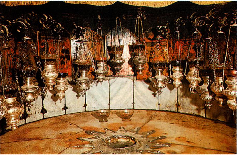 〔유 적〕 예수 탄생 성당 : 콘스탄틴 대제의 어머니 성녀 헬레나는 324년에 베들레헴으로 순례 와서 예수의 탄생지로 전해 오는 동굴을 참배한 후 아들에게 청해서 바로 그 동굴 위에다 성당을 짓게 하였다. 공사는 정성을 다했기 때문에 오래 걸려 339년 5월 31일에 축성되었는데, 이 성당을 '콘스탄틴 성당' 이라고 한다. 그 후 이 성당은 불탔는데 그 시기와 화재 원인에 관해서는 설이 많다. 짐작하건대 510년 대지진 때 화재가 났거나, 아니면 529년 사마리아인들의 폭동 때 불타 버렸을 것이다. 다행히 콘스탄틴 성당 바닥을 장식했던 모자이크 일부가 지금의 예수 탄생 성당 중앙 통로 중간 지점에 보존되어있다. 나무판자를 들추면 아름다운 십자가 모자이크가 보이는데 곡선이여러 겹 교차해 있는 것이 우리 나라의 매듭 기법을 연상하게 한다. 유스티니아누스 황제(527~565)가 531년에 완공한 지금의 예수 탄생 성당은, 그 후 지붕과 바닥과 내부 장식 정도만 바뀌었을 뿐 나머지는 거의 원형 그대로 보존되어 있다.