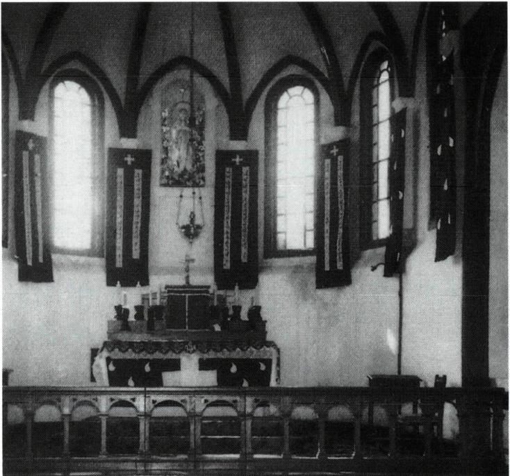 ▲ 옛 성당 내부 모습(왼쪽)과 1959년 3월 12일의 루르드의 성모 꾸리아 창립 기념.