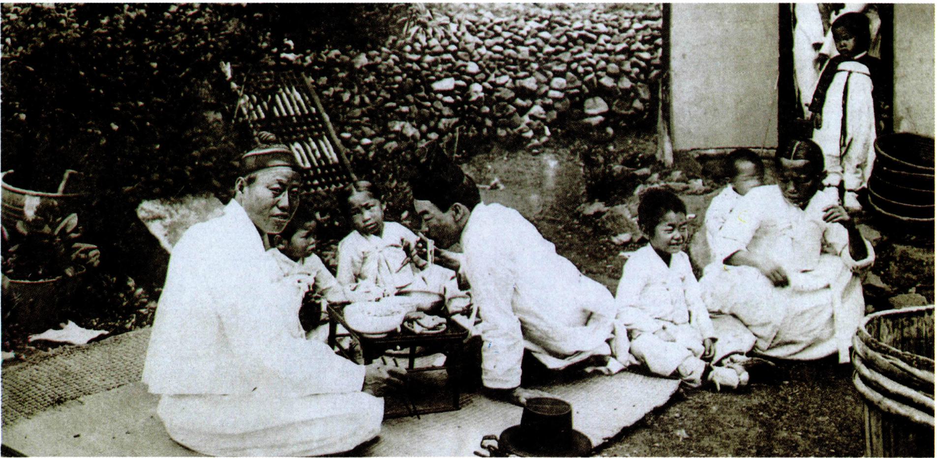 전통적인 가부장제 아래에서의 식사 모습.