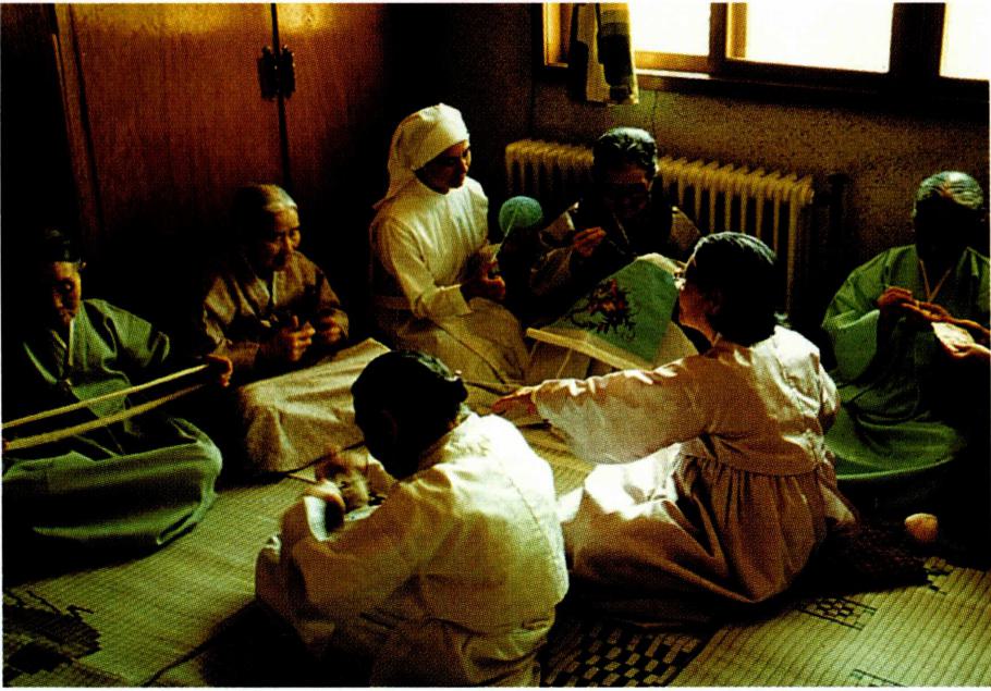 〔한국 진출〕 경로 수녀회의 한국 진출은 1971년 9월 1일, 3명의 외국인 수녀들이 양로원 사업을 위해 내한한데서 시작되었다. 이들은 곧 서울에서 한국어 교육을 받은 후 1973년 7월 30일 청주에 있는 성심원을 인계받아 운영해 나갔다. 본래 성심원은 1968년 청주교구장 파디(James Pardy, 巴智) 주교가 설립한 것으로 경로회 수녀들이 부임하였을 당시 5명의 수녀가 46명의 노인들을 돌보고 있었다. 이때 수녀들은 그 운영을 인계받은 뒤부터 새로운 계획을 수립하여 이듬해 현재의 양로원 건물을 건립하고, 새 입회자들을 받기 시작하였다. 그러나 처음에는 수련소가 마련되어 있지 않았으므로 입회자들은 프랑스 본원에 가서 수련 생활을 해야 했다. 한국 분원에서 수원에 제2의 양로원 겸 수련소를 건립한 것은 1990년이었다. 한편 이 수도회가 국제 수도회이기 때문에 그 동안 탄생한 한국인 수도자들은 한국은 물론 외국에도 진출하여 1993년 현재 9개국에서 활동하고 있으며, 한국 분원에는 모두 9명의 수도자들이 두 곳의 양로원에서 사도직에 임하고 있다.