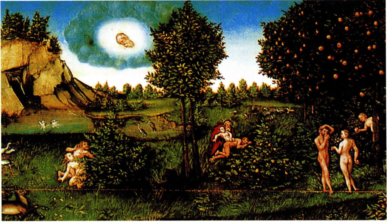 에덴 동산 한가운데 있는 생명 나무와 선악과나무.