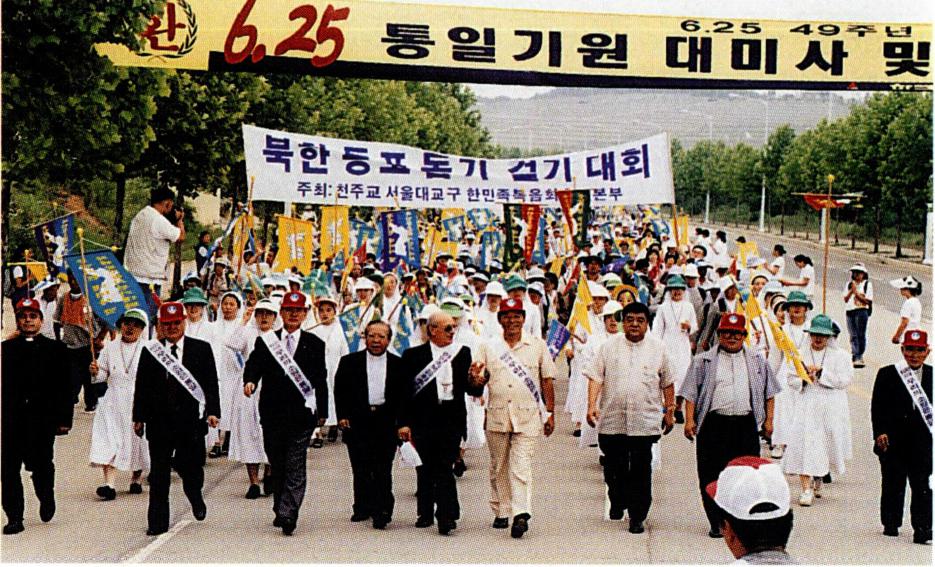 6 · 25 전쟁이 발발한 뒤 서울 대목구는 한동안 침체 상태에 들어가게 되었다. 게다가 1950년 7월 2일 영등포 본당의 보좌 이현종(李顯鍾, 야고보) 신부가 피살된 것을 비롯하여 교황 사절 번(Byrne, 方) 주교와 그의 비서 부스(W. Booth, 夫文化) 신부, 공베르(Gombert, 孔) 형제 신부, 대목구 당가인 유영근(偸榮根, 요한) 신부 등이 체포되거나 피살되었고, 이 중 몇몇은 '죽음의 행진' 을 겪어야만 하였다. 당시 유럽 순방 중에 있던 노기남 주교는 즉시 귀국하여 부산의 피난 교회를 돌보는 데 노력하였으며, 11월에는 유엔군을 따라 평양으로 가서 미사를 집전하였다. 뿐만 아니라 1951년에는 신학교를 제주도 · 부산 · 밀양으로 옮겼으며, 군종 제도 설립에 동참하여 '가톨릭 군종 신부단' 을 창설하였는데 이후 군인 사목은 전교 활동에서 중요한 위치를 점하게 되었다.