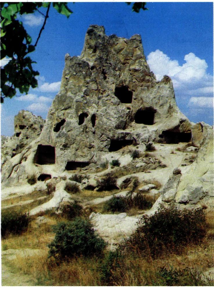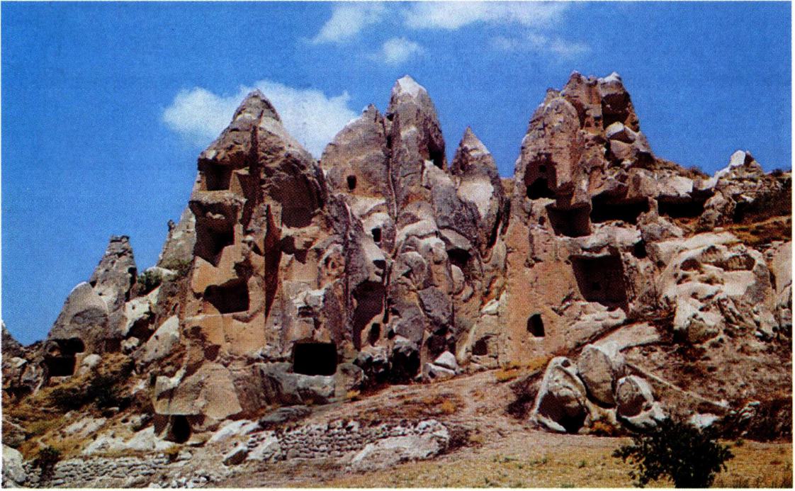 〔유 적〕 지하 도시 : 가빠도기아의 지질은 독특하다. 이 지역은 본디 푸석푸석한 사암 지대였다. 그런데 언젠가 화산이 터지면서 딱딱한 용암이 흘러 넘쳐 사암을 뒤덮었다. 그러므로 푸석푸석한 사암을 파내기만 하면 훌륭한 주거 공간이 생긴다. 여름에는 시원하고 겨울철에는 따뜻한 땅굴 방이다. 그래서 선사 시대 때부터 주민들은 집을 짓지 않고 땅굴 속에서 살았다. 지하 도시만 30개나 되는데 테린쿠유(Derinkuyu)와 카이마클리(Kaymakli)가 가장 유명하다.