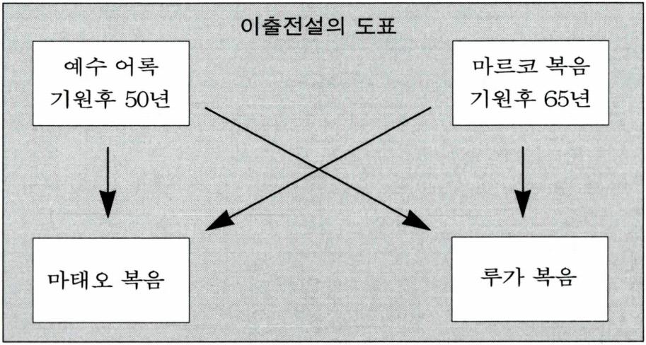 첫째, 1789~1790년 예나 대학교 신약학 교수였던 그리스바흐(J.J. Griesbach)는 마태오 · 루가 복음서가 먼저 쓰여졌고, 마르코 복음서는 축소판으로 나중에 쓰여졌다는 설을 내세웠다. 이 설을 따르는 사람이 오늘날에도 어쩌다 있기는 하지만(William R. Farmer, The Synoptic Problem, NewYork, McMillan, 1964) 점차 설득력을 잃을 것이 분명하다. 둘째는, 1838년 빌케(C.G. Wilke) 및 바이세(C.H. Weisse)가 처음으로 제창하고, 1863년에 홀츠만(H.J. Holtzmann)이 지지한 '두 사료설' (二出典說, Zweiquel-lentheorie)이 지난 150여 년 동안 검정을 거쳐 오늘날에는 정설이 되었다. 이 설에 따라 공관 복음서의 형성 과정을 아래와 같이 3단계로 서술할 수 있다.