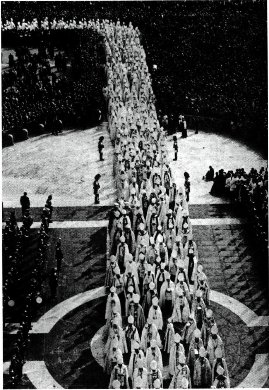 공의회가 열리는 성 베드로 대성당으로 입장하는 주교(교부)들의 행렬.