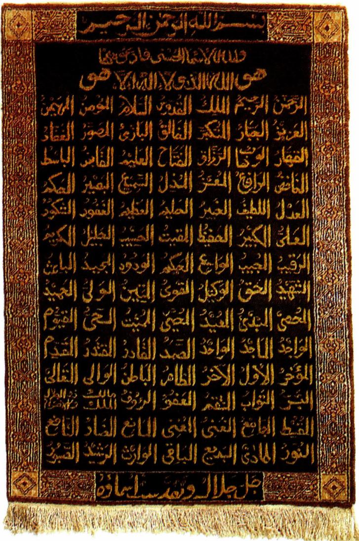 알라의 이름이 자수된 예배용 융단.