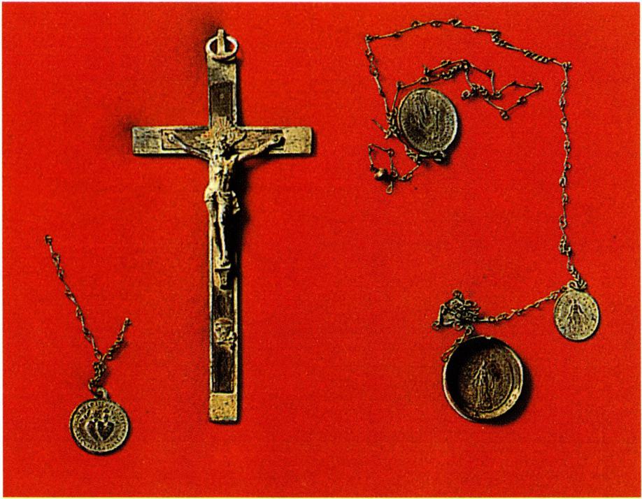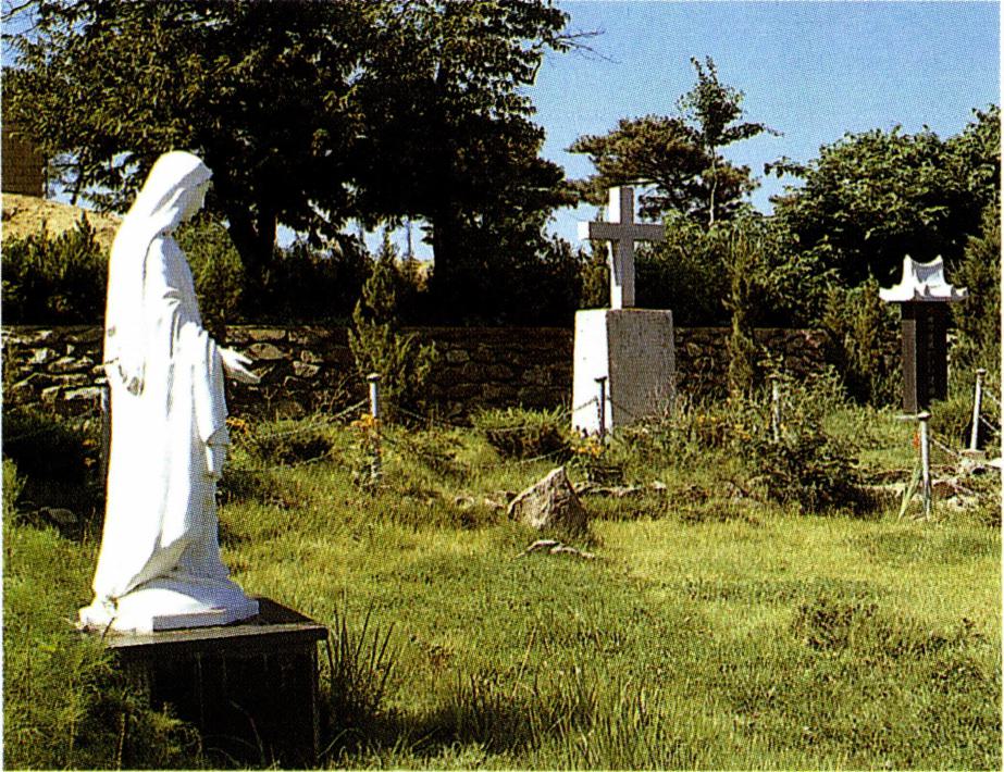 이존창의 생가 터에 조성한 여사울 사적지 전경(왼쪽)과 이곳에서 발굴되어 절두산 순교 기념관에 기증된 성물.