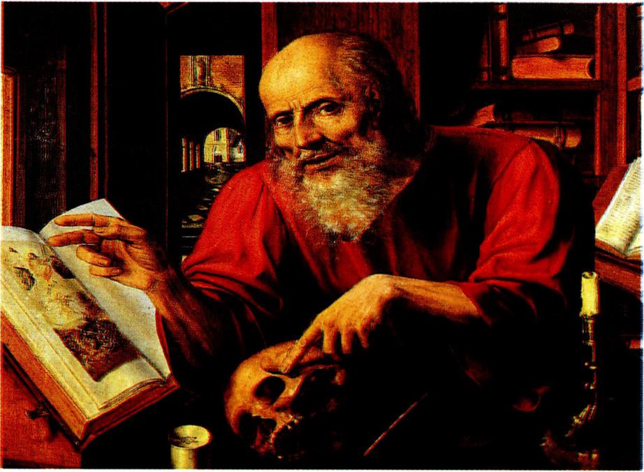 [생 애] 예로니모는 347년경 북부 이탈리아 아퀼레이 아(Aquileia) 근처에 있는 스트리도니아(Stridonia)의 부유 한 가정에서 태어났다. 12세 때 로마에 가서 도나투스 (Aelius Donatus, 4세기)라는 유명한 학자로부터 수사학과 라틴어 문학에 대해 공부하였다. 이때 그는 세속 학문에 전념하였지만, 주일에는 사도들과 여러 순교자들의 성지 특히 카타콤바를 방문하여 신앙에 관심을 갖게 되었다. 19세 때 리베리오 교황(352~366)으로부터 세례성사를 받고 프랑스 지방을 여행하다가 트리어에 정착하여 정부 관리로 일하였는데, 이때 수도 생활에 관심을 갖고 하느 님께 자신을 봉헌하였다. 그는 370년경 고향인 아퀼레 이아로 돌아와 발레리아노 주교의 지도 아래 같은 뜻을 갖고 있던 몇몇 친구들과 함께 복음적 공동 생활을 시작 하였다. 이때 그는 테르툴리아노(160~223) · 치프리아노 (?~258) · 힐라리오(315?~367?) 등 라틴 교부들의 저서를