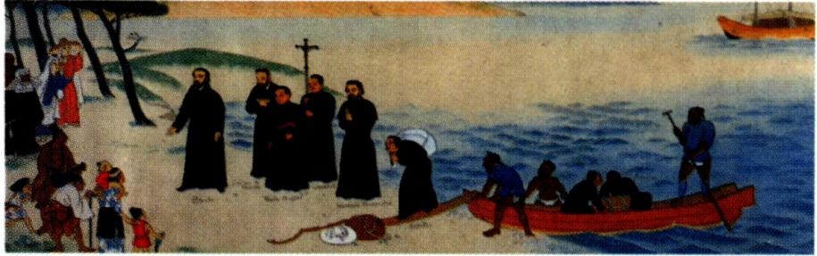 일본 천주교회사는 1549년 8월 15일 규슈의 가고시마(鹿兒島) 상륙한 예수회 소속 선교사 사베리오 신부로 부터 시작된다. 그는 이후 2년 3개월에 걸쳐, 히라도(平戶) · 분고(豊後) · 교토(京都)와 야마구치(山口) 등지에서 활동하며 약 700명의 일본인에게 그리스도 신앙을 심어 주고, 중국 선교를 위해 일본을 떠났다(155. 11). 그의 뒤를 이어 토레스(Cosme deTorres) 신부는 적응주의適適應主義 accommodatio) 노선과 포르투갈 상선의 일본 출입을 선교 활동과 연계 지으며, 봉건 영주인 각지의 다이묘(大名)를 입교시켰고, 교토에 대한 선교를 추진하였다. 18년 간의 그의 사목 기간 동안 약 3만 명이 세례를 받았고, 일본 각지에 40여 개의 교회를 건축하였다. 또한, 알메이다(Almeida) 신부의 도움으로 분고에서 병원, 육아원, 양로원 등을 경영하며 서민 대중에게 접근하였다. 그 뒤를 이은 3대 선교 책임자인 카브랄(F.Cabral) 신부는 1570년 성직자 회의를 개최하여 일본 선교 방침을 확정하는 한편, 오다 노부나가(織田信長)와 각지의 기리시탄 다이묘의 후원으로 교세를 크게 늘일 수 있었다. 그래서 교회의 수가 150여 개로 늘어났고, 그동안 혼란이 심했던 교토에 남만지(南蠻寺)라고 불리는 성당을 건축하였다. 1580년에는 신자의 수가 약 10만 명으로 늘어났다. 사베리오 이후 30년 만에 이처럼 교회가 발전할 수 있었던 것은 선교사들의 희생적인 선교 활동의 결과라 할 수 있으나, 당시 일본 국내의 정치적 내란 사태 · 사회적 혼미 등의 조건에 힘입은 바가 컸다.