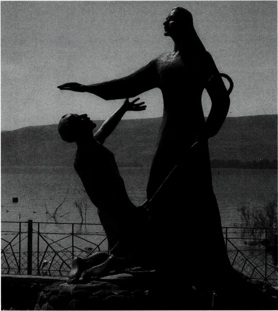 베드로에게 양들을 맡기는 예수(타브가 베드로 수위권 성당 뜰).