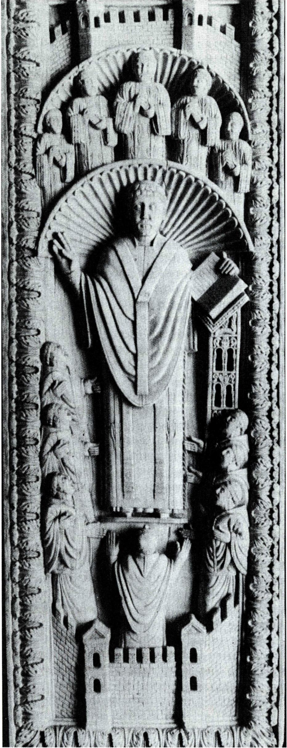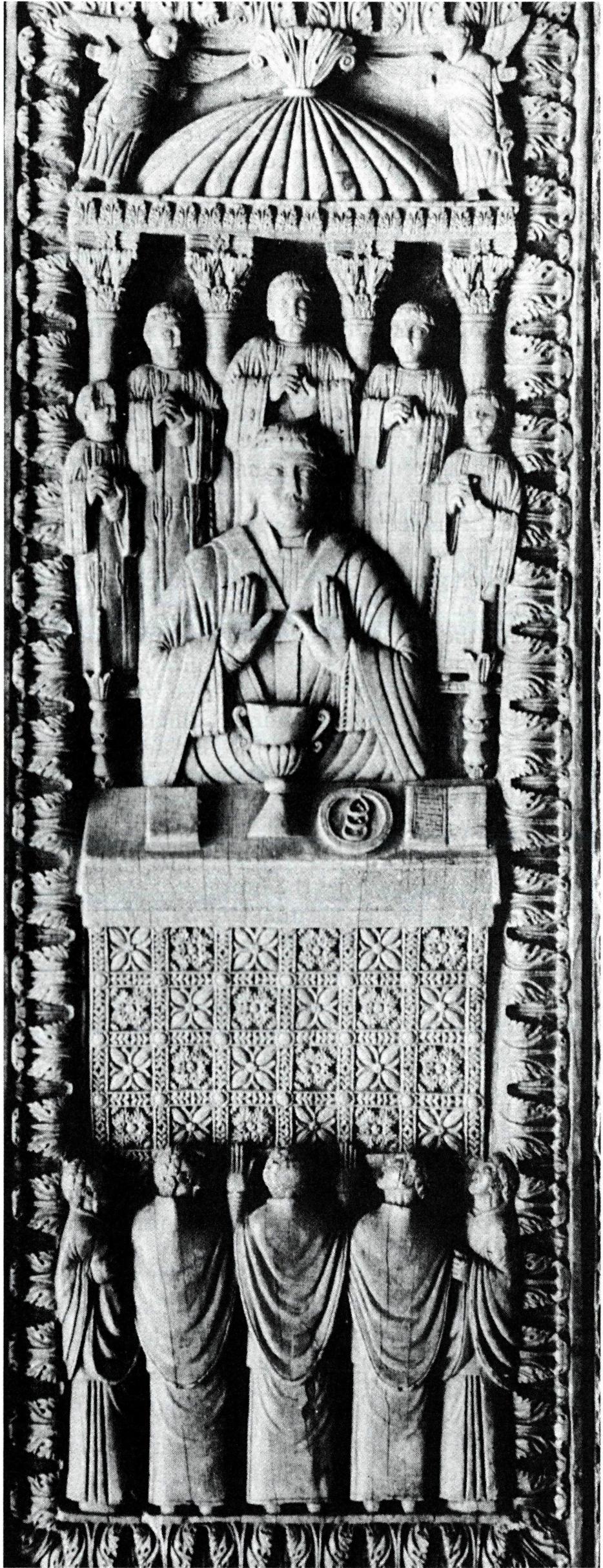 전례 중에 성직자들과 함께 기도하는 대주교.