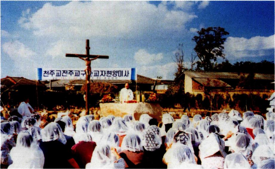 이 시기부터는 순교자 현양 운동이 본격화되었다. 신유박해 때 유항검과 그의 가족이 순교한 후 폐족되자 노복들과 친지들은 그들의 시체를 거두어 고향에서 1km가량 떨어진 김제군 용지면 제남리 바우백이에 가매장하였다. 그러나 1914년 그 땅 소유주의 요청으로 유항검가족 묘를 이장할 수밖에 없어서, 전주 본당 보두네 신부와 회장단은 사순 시기 때 파묘하여 4월 19일 치명자산정상에 안장하고, 1949년 7월 17일 전동 본당 자모회가 주축이 되어 14척 높이의 십자가를 세웠다. 그보다 앞서 되재 본당은 1939년 기해박해 100주년을 맞이하여 천호 성지에 있는 순교자들의 무덤 앞에 대리석 십자가 비를 세우고 축복식을 가졌다. 1949년 9월에는 평신도의 신앙 재무장과 평신도 사도직의 조직적 활동을 활성화하기 위해 18개 본당의 대의원들이 모여 '가톨릭 연맹' 을 조직하고 평신도 역할과 사명을 다짐하였다. 군산 본당에서는 가톨릭 연맹, 청년회, 성모성심회 등이 신자 배가운동을 벌여 예비 신자 180명을 인도하였다.