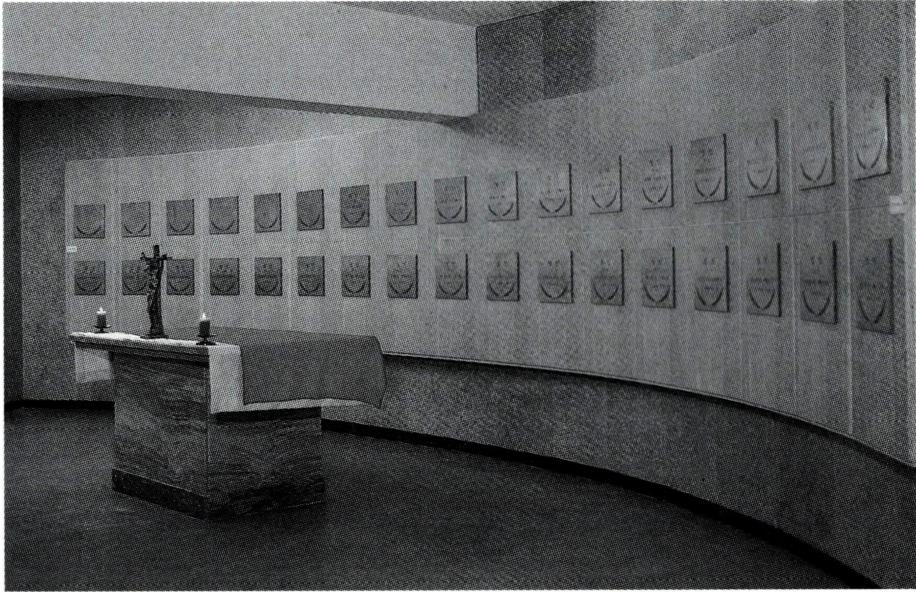 순교 성지 지하실에 마련된 성해실(왼쪽). 순교 정신의 상징성과 한국적인 고유미를 나타내고 있는 순교 기념관과 성당(이희태 작).