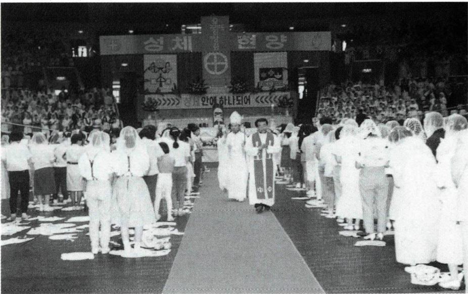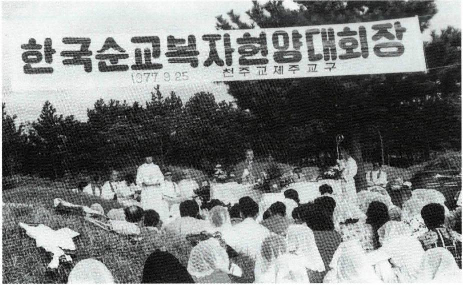 〔본당의 확대와 교구의 성장〕 1980년대는 교회 안팎으로 시련과 기쁨이 교차하던 시기였다. 특히 한국 천주교회에서는 1984년에 맞이하게 될 교회 창설 200주년 기념 행사들을 준비해 가고 있었으며, 한국 순교 복자 103위의 시성을 위해서도 많은 노력을 기울이고 있었다. 이에 제주교구에서도 1980년 7월 5일 서귀포 중앙 본당에서 신축한 성당을 봉헌하면서 본당 명칭을 '서귀 포 복자 본당' 으로 개칭하였다. 이어 1981년 10월 25일에는 신제주에 신축한 성당 봉헌식이 있었고 11월 1일자로 '신제주 본당' 이 설립되었으며, 11월 29일에는 '금악 준본당' (1985년 10월 본당 승격)이 설립되었다.