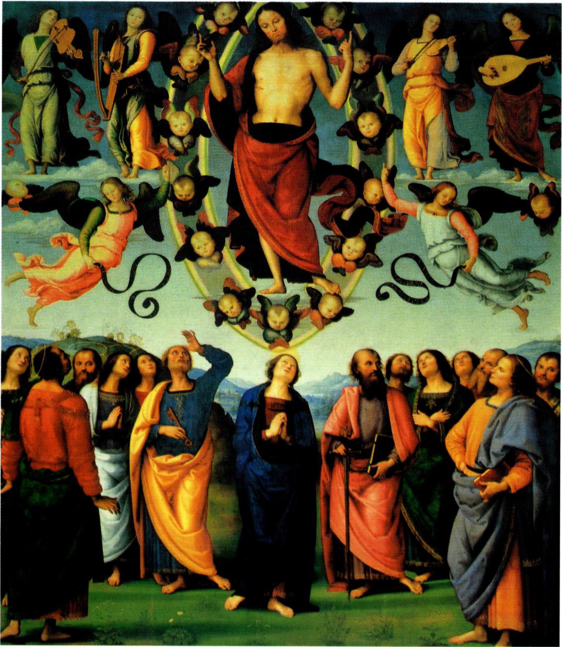 "갈릴래아 사람들아, 왜 하늘을 쳐다보며 서 있느냐? 너희 곁을 떠나 하늘로 올라가신 저 예수는, 그분이 하늘 로 가시는 것을 너희가 본 그대로 (다시) 오실 것이다" (사도 1, 11). 천사의 이 말은 승천의 의미를 간결하게 설 명할 뿐 아니라, 세말(世末)의 재림과 밀접한 관련을 나 타내고 있다. 그리스도는 뽑힌 이들을 위하여 먼저 승천 하여 자리를 준비한 다음 다시 내려와서 그들과 함께 하 느님 나라에 올라가 영원한 삶을 살게 할 것이다. 그러나 신자의 중요한 임무는 선교 사명이다. 신자들은 '하늘만 쳐다보지 말고' 세상에 나가 시간을 내어 열성적인 선교 사명을 실천한 다음, '다시 오실' 그분을 맞이해야 한다. 교회 시기는 바로 선교의 시기이기 때문이다.