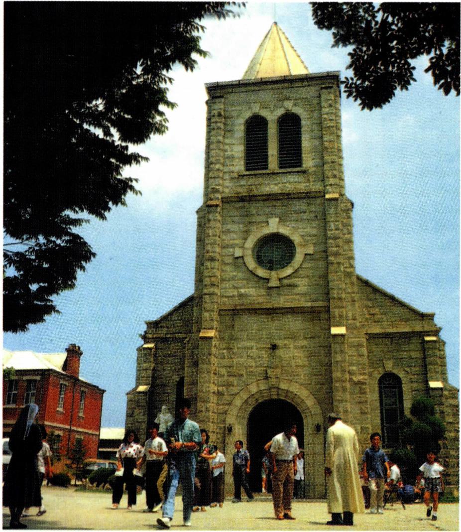춘천교구 주교좌 본당. 강원도 춘천시 죽림동 38 소재. 1920년 9월 풍수원(豊水院) 본당에서 분리 · 설립되었으며, 창설시 명칭은 곰실이었는데 이후 춘천 약사리 (藥司里), 춘천 등의 명칭을 거쳐 1960년 무렵부터 지금 의 명칭을 사용하였다. 주보는 예수 성심. 관할 구역은 죽림동, 약사동, 중앙로 1 · 2 · 3가, 소양로 4가, 효자1 동, 낙원동, 근화동 전 지역. 〔교 세〕 1922년 151명, 1955년 1,500명, 1962년 4,824명, 1975년 3,677명, 1983년 3,289명, 1990년 2,998명, 1996년 3,802명, 2002년 1,728명. 〔역대 신부〕 초대 김유룡(金裕龍) 필 립보(1920. 9~1930. 6), 2대 이기준(李起俊) 토마스(1930. 6~1931.5), 3대 서병익(徐丙翼) 바오로(1931.5~1935), 4 대 조인원(趙仁元) 빈천시오(1935~1936. 5), 5대 유영근 (俞榮根) 요한(1936. 5~1938. 10), 6대 퀸란(Quinlan, 贴 蘭) 토마스(1938. 10~1940), 7대 마리난(Marinan, 梅) 제 라르도(1940~1941.10) 8대 도일(Doyle, 도) 야고보(1941.10~1942. 2), 9대 신성우(申聖雨) 마르코(1942. 2~1945.12), 10대 조응환(曹應煥) 타대오(1945. 12~1947,11), 11 대 갤라거(Gallagher, 갈) 프란치스코(1947. 11~1948. 3), 12대 헤이워드(Hayward, 吳) 후베르토(1948. 3~1951.8) 13대 코머포드(Comerfond, 공) 토마스(1951. 8~1953. 4) 14대 조응환(1953. 4~1954. 9) , 15대 코머포드(1954.9~1958. 9), 16대 맥마흔(McMahon, 안) 아르도(1958.9~1965.4), 17대 코머포드(1965.4~1969.2), 18대 방영구 (方永求) 실베스테르(1969 2~1975.2), 19대 이응현(李應 鉉) 테오도로(1975. 2~1982. 10), 20대 전세권(全世權) 바 오로(1982. 10~1989. 3), 21대 김택신(金澤信) 요셉(1989.3~1996. 8), 22대 이정행(李正行) 요한(1996. 8~2003. 1), 23대 김현준(金鉉俊) 율리오(2003. 1~현재). 〔전사 및 공소 설립〕 신해박해(1791), 을묘박해(1795) 신유박해(1801) 등 연이은 박해를 피해 서울과 경기도에 밀집하여 살던 신자들은 충청도와 강원도의 산간 벽지로 숨어 들었다. 이들 가운데 경기도의 申太甫, 베드로)는 40여 명의 교우를 이끌고 강원도 횡성군 풍수원 으로 피난하여 교우촌을 이루었다. 이들 초기 신자들 가운데는 춘천 신읍리 지방의 최 요한과 강원도 회양 지방 의 조신철(趙信喆, 가롤로)처럼 1815년에 투옥된 사람 들도 있었는데, 조신철은 강원도 사람으로는 유일하게 1984년 5월 5일 서울에서 교황 요한 바오로 2세에 의해 시성되었다. 이후 1840년에는 춘천에서 신자 9명이 투옥되어 그중 2명이 옥사하기도 하였다. 전교 활동이 자유로워진 1880년을 전후하여 강원도 지방은 상주하는 신부가 없었음에도 불구하고 신자수가 증가하여 2,000여 명에 이르렀다. 이에 1888년에 조선 대목구장 뮈텔(Mutel, 閔德孝) 주교는 풍수원 본당을 설 립하고 초대 주임으로 파리 외방전교회 소속 르 메르(Le Merre, 李類斯) 신부를 파견하여 강원도 지방에서 최초로 정식 교회의 출범을 보게 되었다. 당시 풍수원 본당은 춘 천, 원주, 화천, 양구, 홍천, 횡성, 평창, 양평 등 12개 군에 걸쳐 29개 공소에 2,000여 명의 교우를 관할하였 다. 그 가운데 곰실 공소는 고은리 윗너부랭이라는 곳에 폐가 한 채를 사서 정착하고 있던 엄주언(嚴柱彥, 말딩) 에 의해 훌륭한 신앙 공동체를 이루고 있었다. 그는 윗너 부랭이에서 살림과 농지를 늘려 아랫너부랭이로 옮겼다 가 다시 곰실 공소로 옮긴 후 조촐한 강당까지 마련하였 다. 이로써 이 지역에 공소 예절이 가능하게 되자, 물구 비 · 춘천 · 화천 · 양구 순으로 공소를 순방하던 풍수원 본당 2대 주임 정규하(鄭圭夏, 아우구스티노) 신부는 곰 실에서 해마다 40~50명씩 세례를 줄 정도가 되었다. 곰실 공소 교우들은 엄 회장의 지도하에 자선 봉사와 더 불어 엄하고 독실한 모범적 신앙 생활에 전념하여 마침 내 신자가 300여 명으로 증가하였다. 그리고 1920년에 는 제대로 규모를 갖춘 공소를 건립하고, 지역을 세 구역 으로 나누어 모범적인 신앙 공동체로 발전하였다. 〔본당 설립과 발전〕 엄주언은 풍수원과 서울의 명동을 수년간 왕복하면서 상주 사제 파견을 간청하여, 마침내 1920년 9월 곰실 공소는 본당으로 승격되어 초대 주임으로 김유룡 신부가 부임하였다. 김유룡 신부 부임 후 교세는 눈에 띄게 신장하여 본당 신자들은 보다 활발한 전 교를 위해 본당의 춘천 시내 진출의 필요성을 느끼게 되 었다. 이에 신자들은 애련회 활동과 더불어 계 조직, 가 마니 짜기, 새끼 꼬기, 짚신 삼기 등을 통해 몇 해에 걸쳐 모은 돈에 논까지 팔아 약사리 고개(현 죽림동 성당 아 래 골롬반 병원 터)와 아랫마당 그리고 김영식의 대자의 집 (약사리 148번지)을 매입하여 개조한 후, 1928년 5월에 이곳으로 성당을 이전하였다. 2대 주임 이기준 신부는 당시 강원도 지사의 협조 아 래 1930년에 강당을 신축하고 당국의 허가를 받아 본당 부설 소화유치원을 설립하였다. 3대 주임 서병익 신부에 이어 4대 주임으로 부임한 조인원 신부는 본당에 부인 회, 소년회, 소녀회를 결성하고, 외교인 전교를 위해 1935년 파스카 축하 대회를 여는 등 활발한 활동을 하였다. 5대 주임 유영근 신부는 전임 신부가 시작한 부인 회, 소년회, 소녀회의 구일기도를 장려하였고, 소화유치 원도 더욱 활성화시켰다. 1938년에는 강원도 지역의 사 목 책임이 골롬반 외방선교회에 위임됨에 따라 6대 주임으로 퀸란 신부가 부임하였