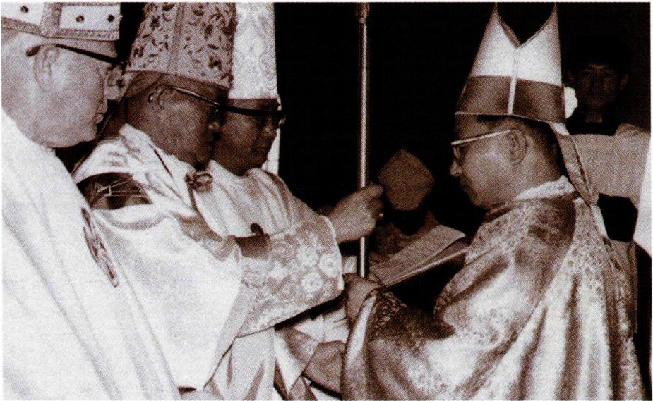 파디 주교는 이처럼 교구 정착을 위해 노력하다가 1969년 6월 28일 고령을 이유로 교구장직을 사임하였으며, 다음날 주노 신부가 교구장 직무 대행으로 임명되었다. 이어 1970년 6월 25일 정진석 신부가 제2대 청주 교구장으로 임명되어 10월 3일 주교 축성식과 착좌식을 가짐으로써, 교구 사목권은 메리놀 외방전교회에서 한국인 성직자에게로 이양되었다. 당시 교구의 교세는 본당 22개소에 신부 27명(한국인 8, 메리놀회 19), 총 신자수 48,073명이었다.