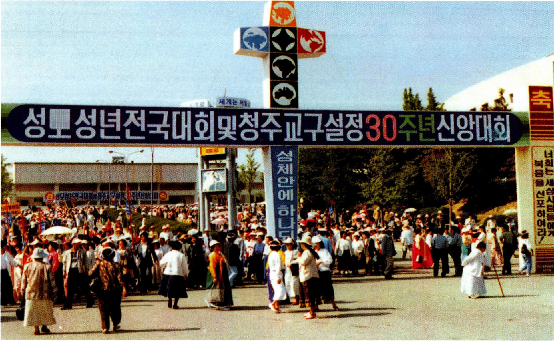 1978년 11월 5일 교구에서는 교구 설정 20주년 기념 신앙 대회를 개최하고, 다음해 12월 6일에는 새 교구 청사를 완공하여 축복식을 가졌다. 1981년 사창동 본당이 신설되었으며, 다음해 3월에는 청주 '갈릴리 어린이집'(지체아 특수 교육 기관)이 개원하였고, 7월에는 교리 교사 연합회가, 11월에는 행복한 가정 운동 협의회가, 1983년 3월에는 교도소 후원회(현 사회 교정 사목)가 연이어 창립되었다. 또 꽃동네는 1980년 9월 교구 사제 총회에서 설립 인가를, 1984년 보건 복지부로부터 사회 복지시설 인가를 받았으며, 1983년 부랑자 요양원이 완공된데 이어 정신병 · 결핵 · 노인 · 알코올 중독자 요양원이 차례로 건립되고, 1989년에는 인곡 자애 병원과 가평 꽃동네가 설립되면서 소외 계층을 위해 교회의 가르침을 실천해 나가는 대표적인 복지 시설로 자리매김하였다. 한편 연풍에서는 1963년에 매입한 공소 강당(옛 향청 건물)을 중심으로 순교 성지 조성 사업이 이루어져 오다가, 1982년 황석두 성인의 유해를 평해 황씨 문중 산에서 성지 구내로 이장하면서 성역화 사업이 본격적으로 추진되었다.
