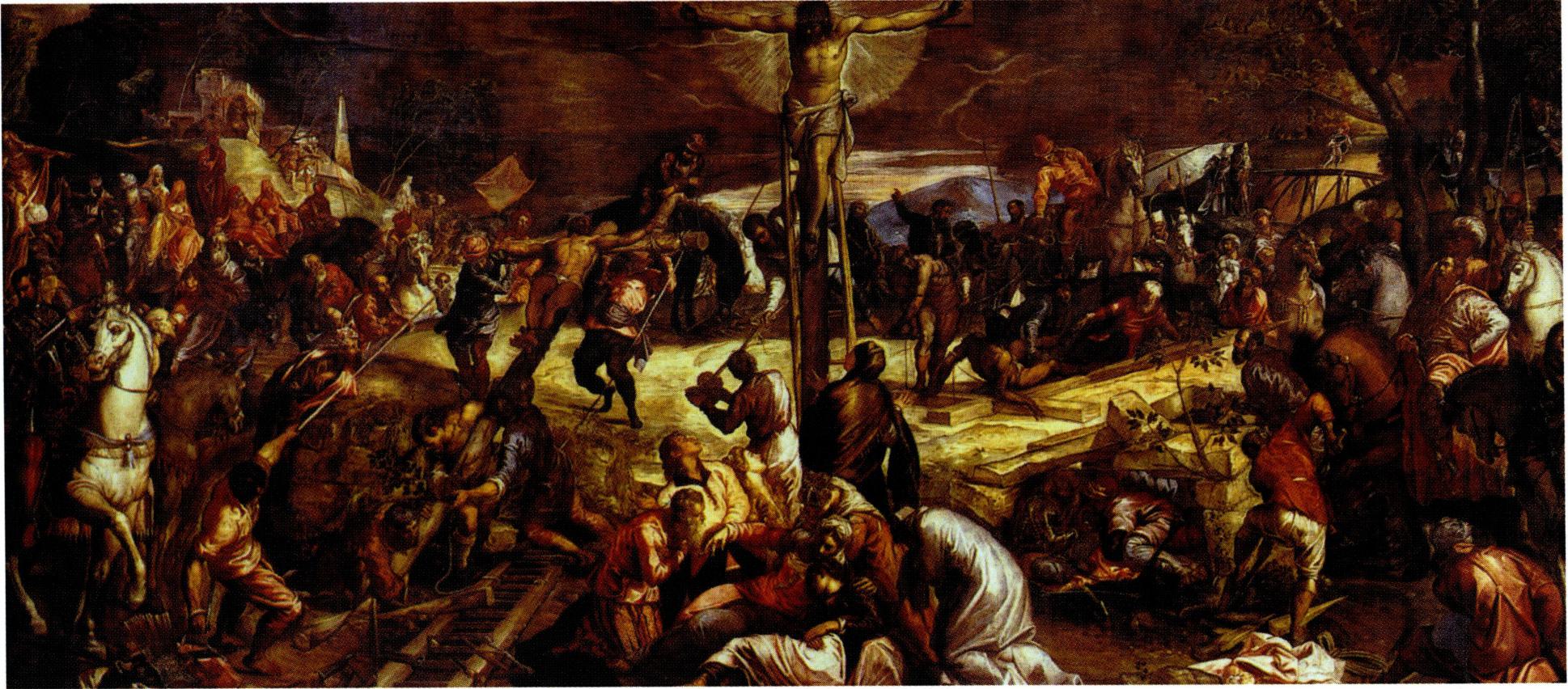 16세기 후반 베네치아 화파에 속하는 마니에리스모 (manierismo) 양식의 화가. 후기 르네상스의 가장 중요한 미술가. 본명은 자코포 로부스티(Jacopo Robusti)이며, '작은 염색공' 이란 의미의 일 틴토레토 (il Tintoreto)라 고 불린 것은 아마도 염색공이었던 아버지의 직업에서 유래한 것으로 여겨진다. [생 애] 1518년경 베네치아에서 태어났다. 그러나 틴 토레토의 생애와 그가 받은 미술 교육에 대해서는 전혀 알려진 바가 없다. 전기 작가의 주장에 의하면, 틴토레토 는 어린 시절 짧은 기간 동안 티치아노(Tiziano Vecellio, 1488/1490~1576)의 공방에 있었으나 거만한 성격과 비범 한 능력 때문에 곧 해고되었고, 그로 인해 두 거장 사이 에는 좋지 않은 관계가 이후에도 계속되었다고 한다. 티 치아노와 달리 틴토레토는 오직 베네치아에서만 살았고, 그곳에서만 그림을 그렸다. 그는 전적으로 교회와 종교 단체 그리고 베네치아 공화국의 통치자를 위해서만 그림을 그렸다. 1538~1548년으로 볼 수 있는 틴토레토의 초기 작업 시기는 예술적 영감에서 얻은 다양한 주제를 변주하는 모색기였다. 그는 미켈란젤로(Michelangeo, 1475~1564) 의 작업과 산소비노(J. Sansovino, 1486~1570)의 부조를 중요시하였으며, 그들의 작품에서 인물 드로잉과 구성 방법 등을 습득하였다. 또한 스키아보네(A.M. Schiavone, 15102~1563)로부터는 스케치처럼 물감을 착색하는 자유 롭고 대담한 방법을 배웠는데, 이러한 요소들이 틴토레 토의 1540년대 회화에서 다양한 방식으로 혼합되어 놀 라운 효과를 주었다. <거룩한 대화>(1540)와 스쿠올라 그란데 디 산 마르코(Scuola Grande di San Marco)를 위해 그린 거대한 그림 <노예를 풀어 주는 성 마르코>(1548) 가 그의 초기 대표작인데, 이 작품은 대담한 단축법, 공 간의 착시와 찬란한 빛의 그물망으로 역동적이며 압도적 인 인상을 준다. 또한 창세기를 주제로, 스쿠올라 델라 트리니타(Scuola della Trinita)를 위해 1550~1553년에 그린 그림들은 그가 티치아노의 양식에 관심을 갖기 시 작하였다는 것을 보여 주며, <목욕하는 수산나)가 이 시 기의 걸작으로 꼽힌다. 1553년경 틴토레토는 스쿠올라 그란데 디 산 마르코의 주요 인물인 마르코 에피스코피 (Marco Episcopi)의 딸 파우스티나(Fausina)와 결혼하여 여덟 명의 자녀를 두었다. 그중 마리에타(Manieta) , 도메니코(Domenico)와 마르코(Marco)는 아버지 틴토레토의 작업장에서 조수로 일하였으며, 대를 이어 화가가 되었 다. 마리에타는 초상화가로 유명하였으며, 도메니코는 아버지의 양식을 고스란히 이어받아 아버지와 함께 도제 궁을 장식하였다. 이처럼 틴토레토 가문은 16세기 말, 베네치아에서 손꼽히는 화가 가문이었다. 1550년경 성숙기에 접어든 틴토레토는 극단의 명암 대조, 다양한 시점과 극도의 단축법, 그리고 사건의 연극 성을 고양시키며 춤추는 듯한 현란한 인물군을 강조함으 로써 자신의 양식을 발전시켰다. 스쿠올라 그란데 디 산 마르코를 위해 그린 석 점의 <성 마르코의 기적>(1562~ 1566)과 산 조르조 마조레(San Giorgio Maggiore) 성당의 <최후의 만찬>(1594), 그리고 1564~1587년에 스쿠올 라 디 산 로코(Scuola di San Rocco)의 벽과 천장을 장식 한 성서를 주제로 한 많은 그림들은 성숙기 최고의 역량 을 보여 주는 작품이다. 이 작품들처럼 그의 회화는 평범 한 인간사 속에 침투한 초월적인 사건들이란 주제에서 기인하는데, 특히 스쿠올라 디 산 로코의 벽화는 그의 작 업 중 가장 위대한 시각적 성과이자 르네상스 회화의 경 이로운 작품 중 하나이다. 틴토레토와 그의 제자들이 도 제 궁에 그린 거대한 <낙원>(1588~1590) 역시 최고의 걸 작으로 꼽힌다. 그러나 여기에는 그의 조수들이 나누어 그린 부분들이 많이 보여 예술적 영감의 수준이 일치하 지 않는 아쉬움이 남는다. 1594년 5월 31일 베네치아에 서 세상을 떠난 틴토레토는 그가 가장 사랑하던 딸 마리 에타의 무덤 옆에 안장되었다. [평 가] 깊은 공간을 가로지르는 대각선 구도는 물론, 화면을 압도하는 연극적인 빛과 총체적인 역동성이 조화 를 이루는 활달한 틴토레토의 양식은 바로크의 선구자적 인 면모를 보이며, 플랑드르 화가인 루벤스(P.P. Rubens, 1577~1640)와 이탈리아 볼로냐의 카라치 가문(Caracci family)에 영향을 주었다. 그가 베네치아 회화에 끼친 영 향은 대단하였으나 그리 이롭지는 않았다. 속기하듯이 빠른 필치로 형태와 빛을 다룬 그의 양식은 후기 작업에 이르면서 정형화되어, 베네치아의 젊은 화가들에게 있어 서는 무의미하지만 외관상으로 불가피하게 따르는 상투 적인 문구처럼 되어 버렸다. 그로 인해 그가 죽은 후, 베 네치아 회화는 급속도로 쇠퇴하였다. (→ 티치아노) ※ 참고문헌 David Rosand, Painting in sixteenth-century Venice : Titian, Veronese, Tintoretto, Cambridge · New York, Cambridge Univ. Press, 1997/ John Steer, Venetian Painting : A Concise History, London, Thames & Hudson, 1985/ T. Nichols, Tintoretto : tradition and identity, London, Reaktion Books, 1999. 〔鄭恩賑〕