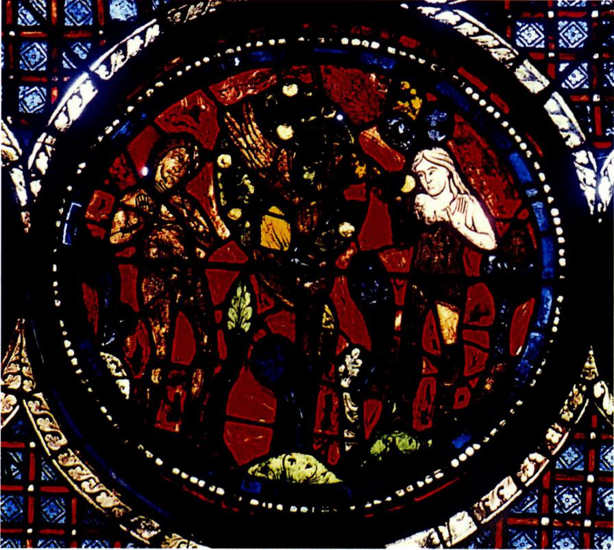 인류를 은총의 결핍 상태에 놓이게 한 아담과 에와의 범죄(샬트르 성당 스테 인드 글라스).
