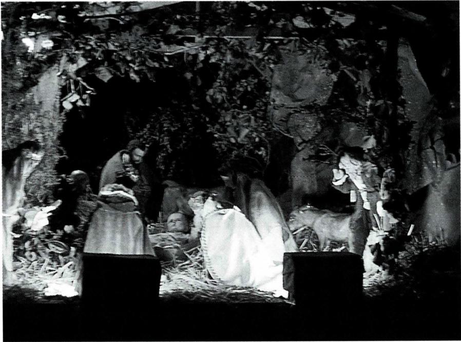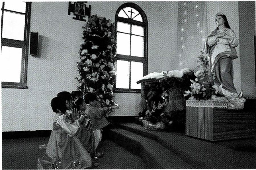 예수가 탄생한 구유 자리에서 유아 세례를 받는 아기들.