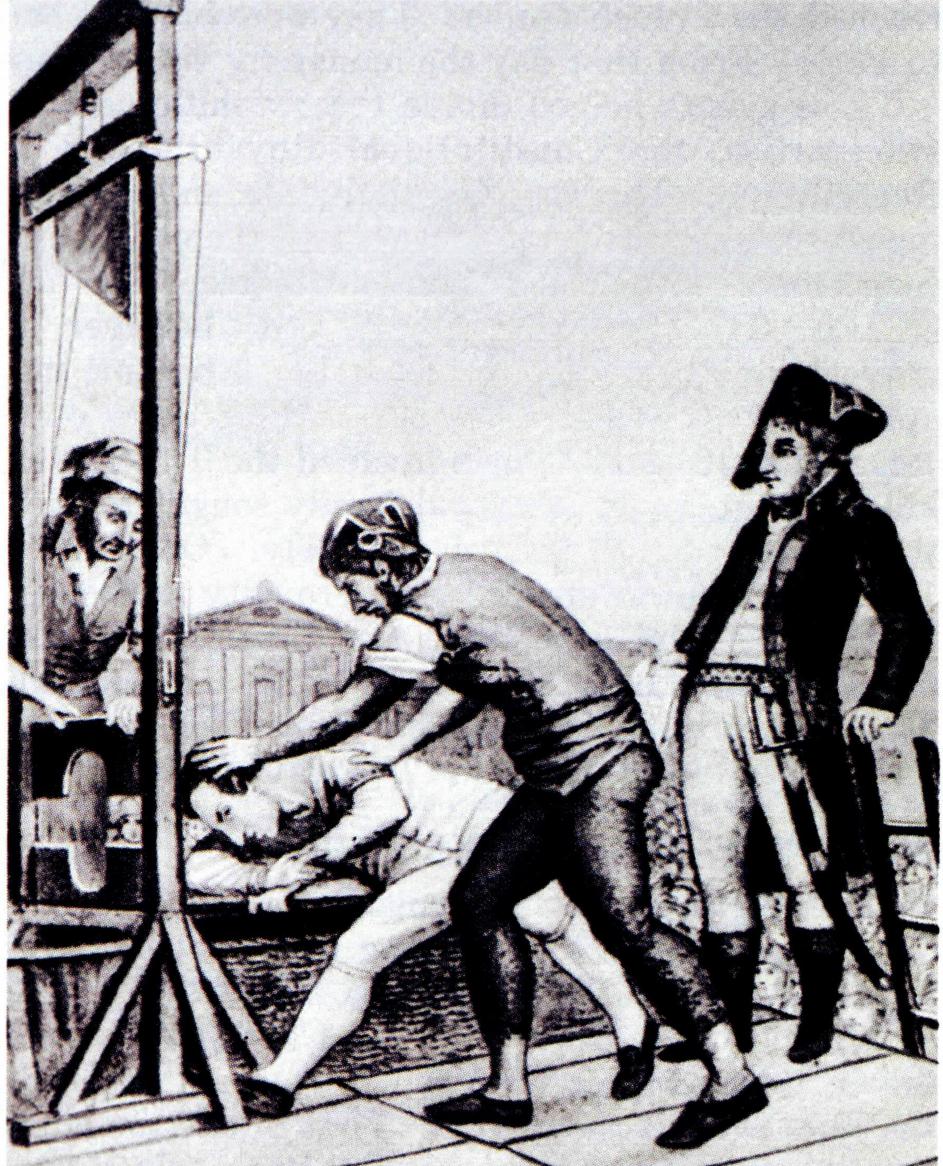 〔민중 혁명(1792. 9~1794. 7)〕 지롱드파의 몰락과 산악파의 승리 : 1792년 9월 실시된 보통 선거를 통해 국민 공회가 소집되었다. 지롱드파 의원들과, 파리 출신의 자코뱅주의자들을 중심으로 이루어진 산악파(山嶽派, Montagnards) 의원들의 약진이 두드러졌다. 두 정치적 파벌의 대립으로 인한 긴장은 뚜렷하게 나타났다. 전자는 민중의 정치적 진출을 사회적 위협으로 간주한 반면, 후자는 특권 계급과 외국의 위협에서 혁명을 지키기 위해서는 민중 계급과의 결합이 불가피하다고 여겼다. 1792년 12월부터 루이 16세에 대한 재판이 시작되자 두 파벌의 견해는 극렬하게 나뉘었다. 산악파는 루이 16세를 처형함으로써 혁명을 공고히 할 것을 주장한 반면, 지롱드파는 국왕의 유죄는 인정하지만 관용 정책을 추진하여 사형만은 면하게 하려고 하였다. 하지만 의회의 의결에 따라 국왕은 1793년 1월 21일 단두대에서 처형되었다.