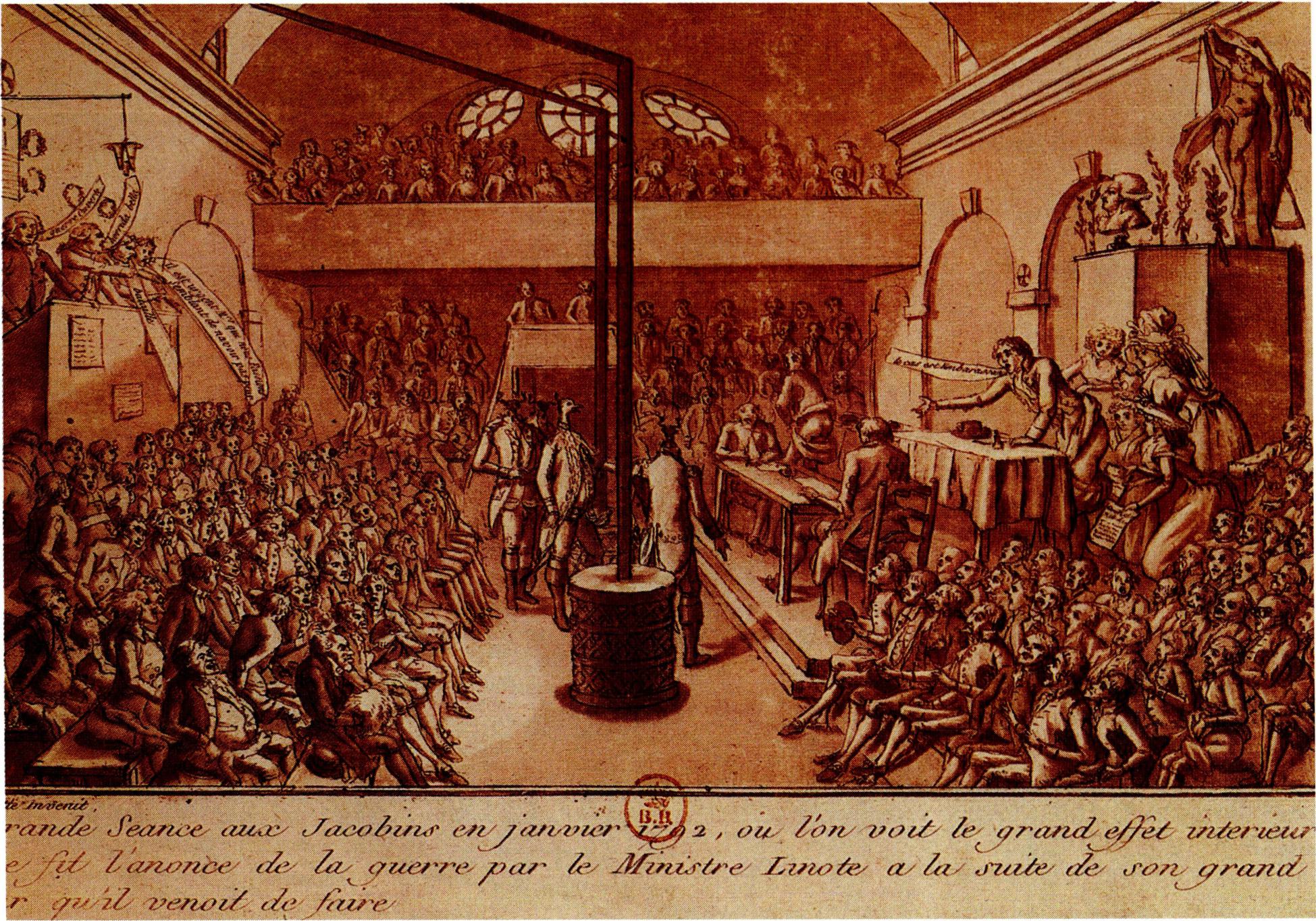 전쟁과 공화정 : 1791년 7월 루이 16세와 그의 가족이 외국으로 탈주를 시도하다 발각되어 파리로 송환되자, 국 왕에 대한 적대적인 분위기가 증대되고 공화정을 세우자는 주장이 확산되었다. 1791년 9월 루이 16세는 새로운 헌법에 선서하였으며, 1791년 10월 1일 제한 선거제로 선출된 새로운 입법 의회가 개원하였다. 국왕의 탈주 기 도 사건과 '상 드 마르스 학살' (Fusillade du Champs-de-Mars)로 정치 세력이 새롭게 편성되어 의회 내에서는 우파인 푀양파(Feuillants)와 후에 지롱드파(Girondins)로 불린 좌파인 브리소파(Bissotins) 등이 형성되었으며, 의회 밖에서는 자코뱅 클럽(Club des Jacobins)의 인물들이 군중에게 강력한 영향을 미치고 있었다. 이러한 분위기 속에서 '상퀼로트' (sans-culote)라고 불리는 도시 민중의 의식화된 전위 부대가 정치 무대에 등장하였다. 이들은 특권 계급 인사들을 격렬하게 비난하는 한편 평등주의와 공포 정치의 강화를 주장하였다. 그 가운데 전쟁 문제가 대두되었고 오스트리아와 프로이센은 '필니츠(Pillnitz) 선언' 을 발표하여 프랑스 대혁명을 분쇄하겠다는 의지를 표명하였다. 프랑스 내에서도 주전론이 대두되었지만 정파에 따라 그 이유는 매우 상이하였다.