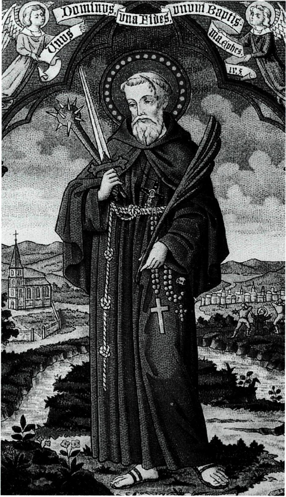 성인. 순교자. 신부. 카푸친 작은 형제회 회원. 법률가와 지크마링겐의 수호 성인. 축일은 4월 24일.