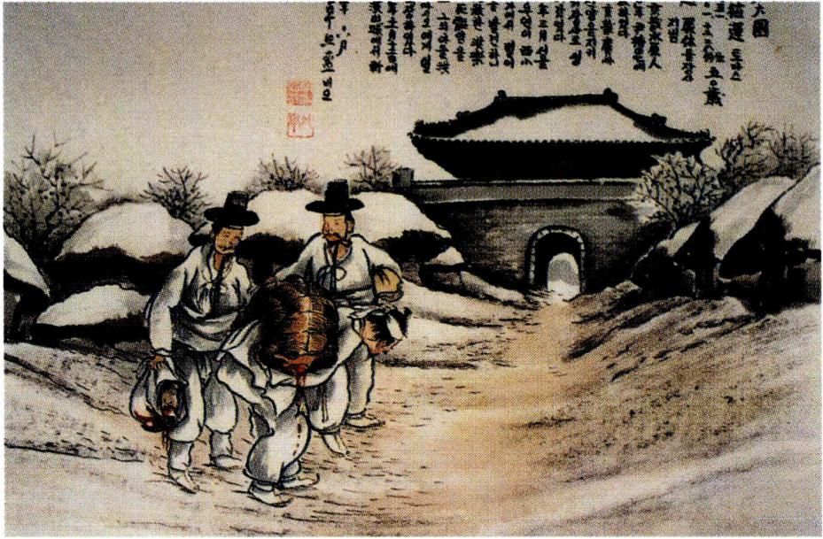 순교한 홍낙민의 시신을 거두어 장사지내는 한덕운.