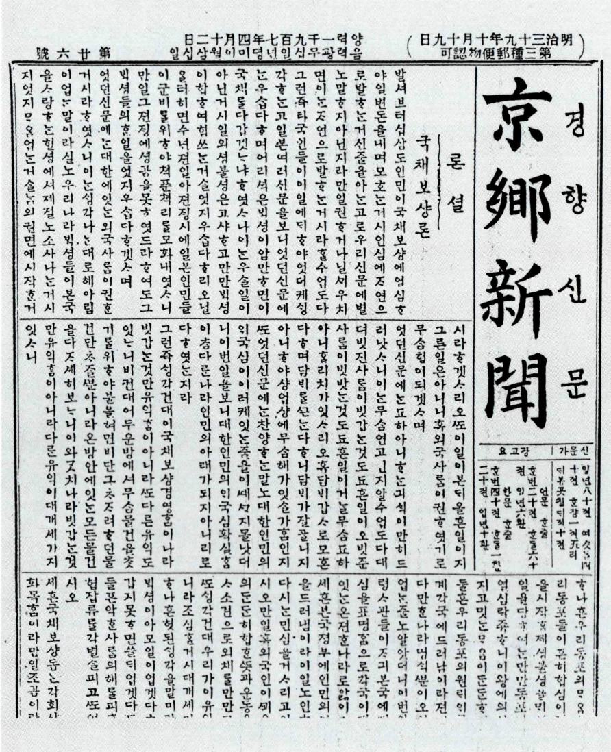 <경향신문> 논설에 게재된 국채 보상론.