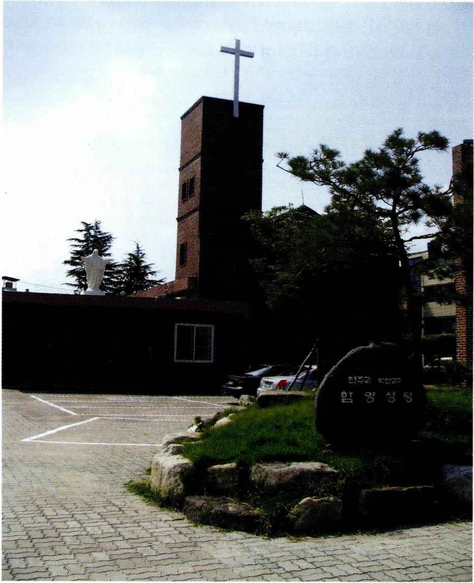 마산교구 소속 본당. 경남 함양군 함양읍 교산리 977-6번지 소재. 1913년 4월 26일 설립. 주보는 원죄 없으신 잉태. 관할 구역은 함양군 전 지역. 관할 공소는 안의 · 공배 · 운산 · 백운 · 관동 · 문정 공소 등 6개소. 〔교 세〕 1953년 746명, 1958년 2,527명, 1965년 3,517명, 1970년 2,623명, 1975년 2,051명, 1980년 2,052명, 1985년 2,015명, 1990년 2,092명, 1995년 2,330명, 2000년 2,402명, 2003년 2,388명. 〔역대 신 부〕 초대 이상화(李尙華) 바르톨로메오(1913. 4~1918.2 , 2대 주재용(朱在用) 바오로(1918. 2~1922. 9), 3대 정수 길(鄭水吉) 요셉(1922. 9~1926. 5), 4대 유선이(柳善伊) 요셉(1926. 5~1936. 6), 5대 박재수(朴在秀) 요한(1936. 6~1943. 2), 6대 권영조(權永兆) 마르코(1943. 2~1948. 5) , 7대 서정도(徐廷道) 베르나르도(1948. 6~1950. 4), 8대 김준필(金俊弼) 아우구스티노(1950. 4~1953. 7), 9대 김 태호(金兌浩) 알로이시오(1953. 7~1957), 10대 정수길 (1957. 10~1959. 3), 11대 박문선(朴文善) 야고보(1959.3~1961. 10), 12대 윤예원(尹禮源) 토마스(1961~1963.1), 13대 이윤호(李潤浩) 필립보(1963. 1~1967. 1), 14대 김석좌(金錫佐) 베드로(1967. 1~1971. 11), 15대 허정식 (許正植) 마태오(1971. 11~1976. 1), 16대 김성길(金成 吉) 아우구스티노(1976. 1~1977. 1), 17대 이형수(李亨 洙) 블라시오(1977. 1~1979. 12), 18대 박주선(朴周善) 안토니오(1979. 12~1984. 1), 19대 서원열(徐元烈) 라파 엘(1984. 1~1987. 2), 20대 차기병(車奇秉) 프란치스코 사베리오(1987. 2~1988. 2), 21대 이창섭(李昌燮) 아우구 스티노(1988. 2~1991.6), 22대 김화석(金華碩) 도미니코 (1991. 6~1994. 3), 23대 조규성(曹圭聖) 베드로(1994.3~1996. 7), 24대 김국진(金國鎭) 가우덴시오(1996.7~2000. 1), 25대 김용민(金鎔珉) 레오나르도(2000.1~2003. 1), 26대 배진구(裵鎭九) 베드로(2003. 1~현재) . 〔본당의 설정과 발전〕 1866년 병인박해(丙寅迫害)를 피해 여러 지역을 떠돌며 피난살이를 하던 노수전(베드 로)이라는 신자가 1907년 함양읍 대덕리 죽장(大德里 竹場)에 정착하면서부터 함양 지역에 천주교가 전래되었 다. 노수전은 고성에서 장사를 하던 최학조를 알게 되어 그를 개종시키고 함양으로 이주하게 하여 그와 함께 본 격적인 전교 활동을 시작하였다. 당시 함양은 전북 진안 본당의 관할 구역이었는데, 진안 본당 초대 주임 김양홍 (金洋洪, 스테파노) 신부는 1909년 죽장에 공소를 설립 하였다. 공소 강당으로는 초대 공소 회장인 최학조(안드 레아)의 사가(私家)를 이용하였으며, 그가 원교로 이사 한 후에는 당시 함양보통학교 부지와 교사(校舍)를 매입 하여 공소로 사용하였다. 공소의 규모는 점차 확대되어 갔고 그에 따라 본당 설 립의 필요성도 증대되어 갔다. 이에 1913년 4월, 대구 대목구 초대 교구장 드망즈(F. Demange, 安世華) 주교는 함양에 본당을 설정하기로 하고 초대 주임으로 이상화 신부를 임명하였다. 이로써 함양 본당은 1911년 대구 대목구가 설정된 이후 첫 번째로 설립 인가를 받은 본당 이 되었다. 초대 주임 이상화 신부는 원교의 공소 강당을 개축하여 임시 성당으로 이용하였으며, 2대 주임 주재용 신부는 부임 직후 임시 성당을 개축하고 1918년 11월 5 일 성당 봉헌식을 거행하였다. 하지만 점차 교세가 확장 되어 신자수가 늘자 기존의 성당이 협소하게 되어, 5대 주임 박재수 신부는 최학조가 죽기 전 기부한 땅 2,000 여 평과 소유 전답(200여 마지기)에 1937년부터 성당 신 축 공사를 시작하였다. 1940년에 완공된 신축 성당은 105평의 고덕식 성당으로, 이를 계기로 함양 본당의 교 세는 더욱 확대되어 갔다. 한국 전쟁이 끝나고 9대 주임으로 부임한 김태호 신부 는 본당의 기틀을 다져 가는 한편, 가톨릭 구제회(N.C.W.C.)의 원조로 받은 구호품들로 지역민들의 전후(戰 後) 복구 사업을 지원하여 신입 교우들이 급증하자, 재 정적으로도 여유가 생겨 함양읍 중심가에 소화유치원을 개원하였다. 이어 10대 주임으로 부임한 정수길 신부는 수녀원을 건립하였으며 11대 주임 박문선 신부는 본당 첫 레지오 마리애 쁘레시디움을 창단하였다. 그러나 유 치원은 재정난 때문에 12대 주임 윤예원 신부에 의해 폐 쇄되었고, 수녀원도 13대 주임 이윤호 신부에 의하여 폐 쇄되었다. 1965년 12월에는 본당 관할이던 산청 지역이 분리되어 본당으로 승격되었다. 14대 주임 김석좌 신부는 부임 당시부터 성당이 읍 중 심가로부터 떨어져 있음을 지적하고 교회 발전과 지리적 여건으로 인한 사목상의 불편함을 해소하기 위하여 읍으 로의 이전 문제를 검토하였다. 그리하여 1970년 본당 자체 기금으로 교산리 학당에 있는 교회 토지(최학조가 헌 납한 것)에 현대식으로 성당을 신축 · 이전하였다. 이후 15대 주임 허정식 신부는 자모회를 성모회로 개칭하는 등 본당 사도직 단체들을 재정비하여 본당 운영의 활성 화를 꾀하였다. 18대 주임 박주선 신부는 수녀원을 신축하고 인보 성 체 수녀회를 초청하였으며, 꾸리아를 조직하여 본당 레 지오 마리애의 체계적인 기틀을 마련하였다. 22대 주임 김화석 신부는 1992년 7월 이농 현상으로 신자수가 줄 어든 광평 공소를 폐쇄하였으며, 9월에는 강당 증축 공 사를 실시하였다. 이어 이듬해에는 본당 설립 80주년 기 념 사업으로 교육관 신축 공사를 시작하여, 10월에 본당 설립 80주