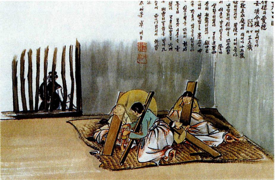 옥에서 전염병에 걸린 사람들을 간호하는 홍금주.
