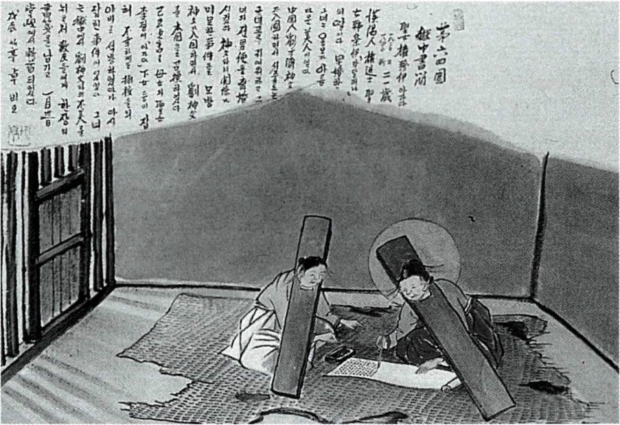 옥중 서간을 쓰고 있는 권진이 아가다(탁희성 작).